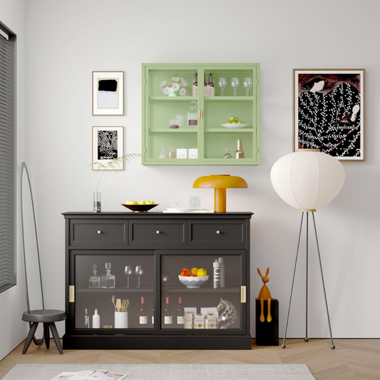 Modern TV Console Storage Media TV Organizing Cabinet Worktop- Black