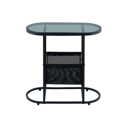 Glass Oval Side Table with Magazine Organizer Living Room Small Space Solution