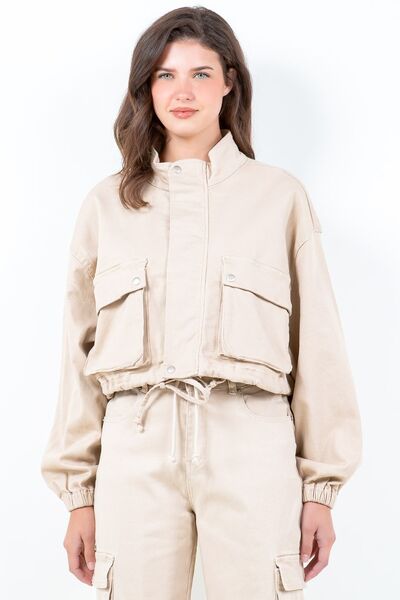 Regular price From $51.64 USDRegular priceUnit price / perSale price From $51.64 USDAmerican Bazi Full Size Drawstring Hem Cargo Pocket Cropped Worker Jacket Plus Size