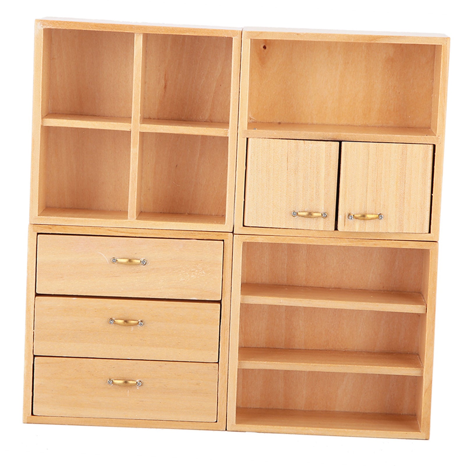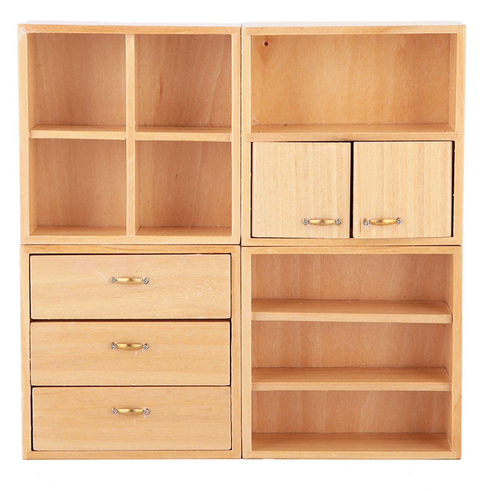 1:12 Mini Wood Cabinet Furniture Living Room Bedroom Cabinet Unit for Dollhouse(Burlywood)
