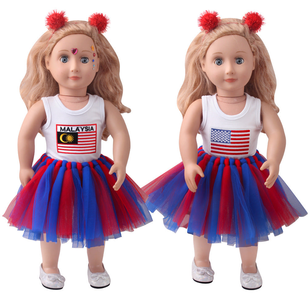 18-inch American Girl Doll Clothes Printed Short Sleeve  Handmade Veil Skirt  Hair Ball Hair Hoop