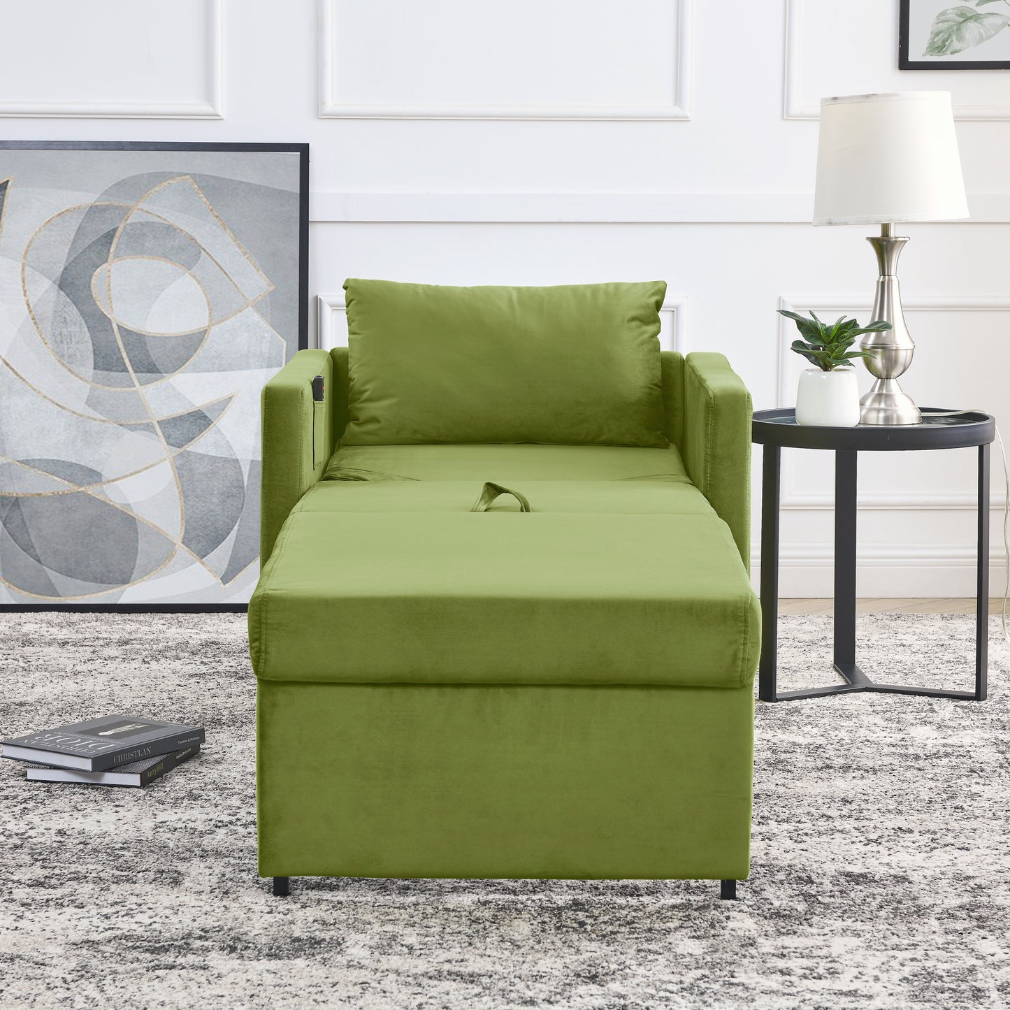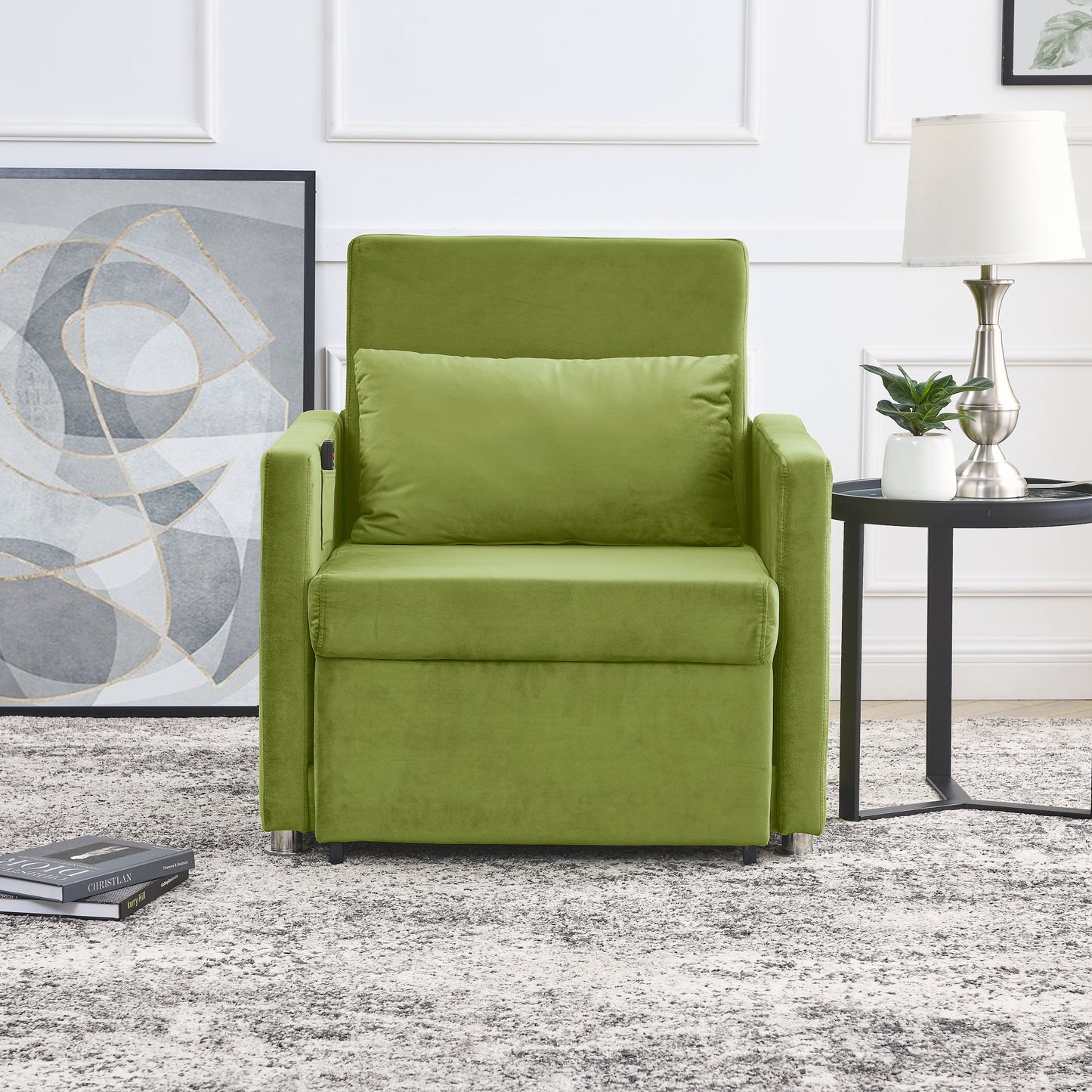 2-in-1 Convertible Sofa Chair Bed Space Saving Lounger Sleeper Chair- Green