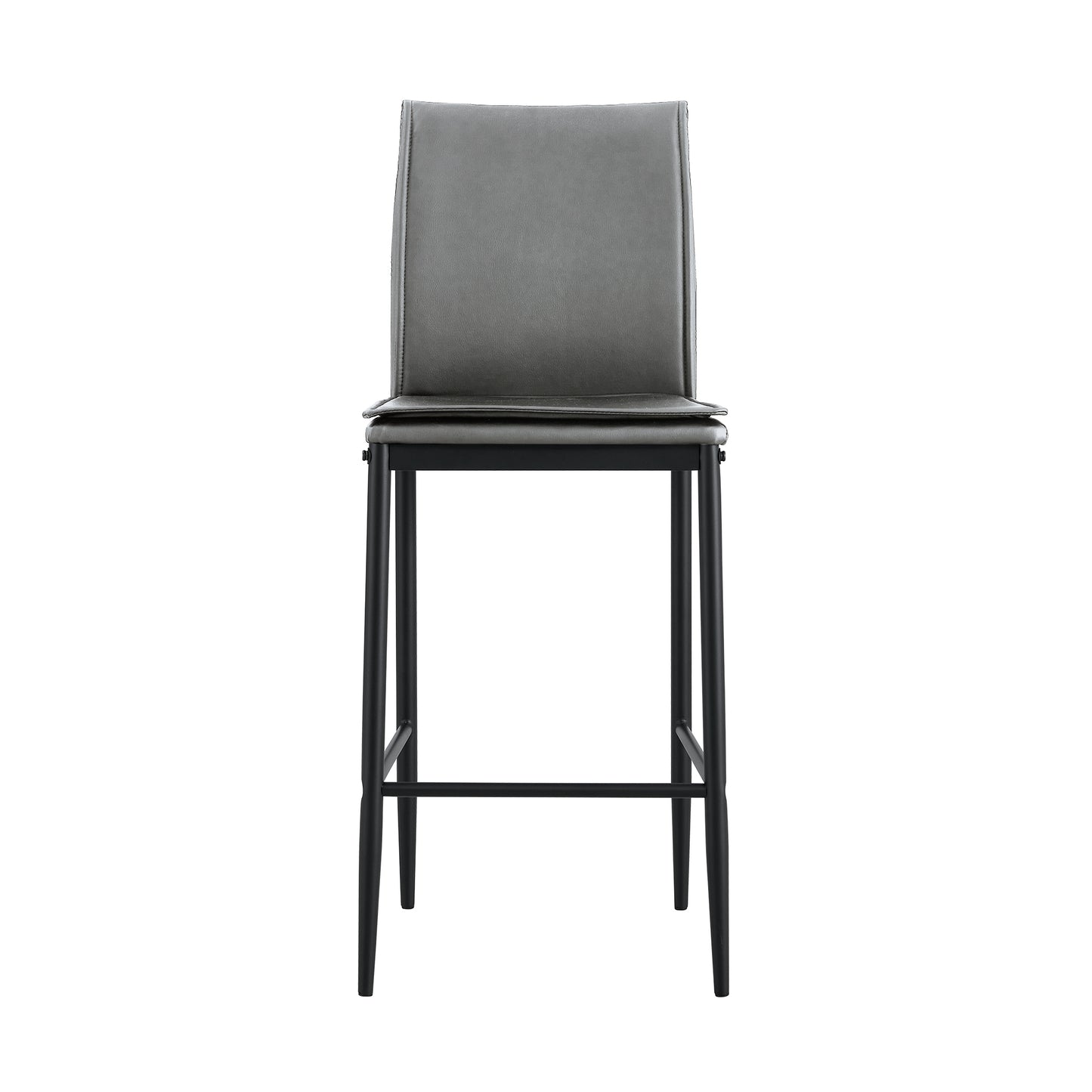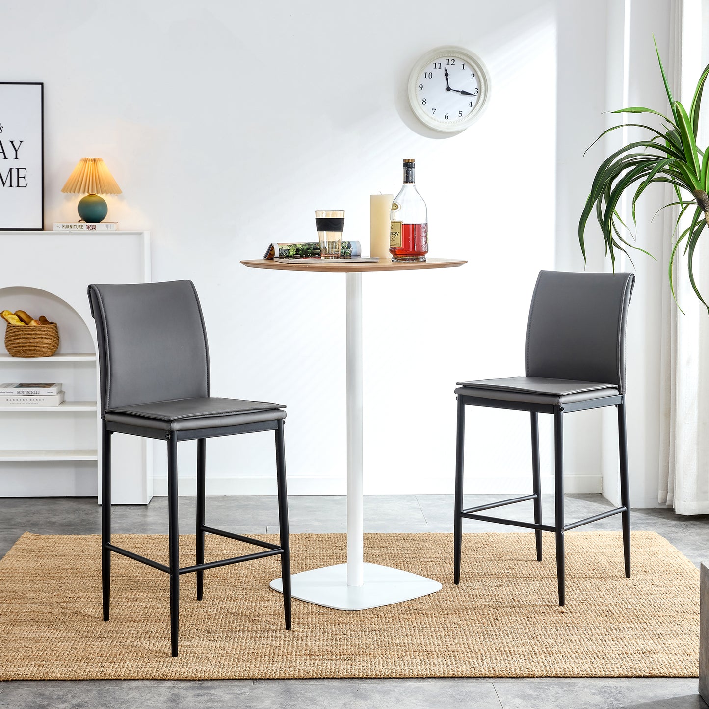 2 Pcs Modern Faux Leather Back Support Bar Chairs with Metal Legs- Grey