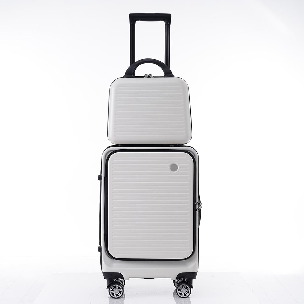 20-Inch Carry-on Luggage with Front Pocket, USB Port, and Carrying Case - White