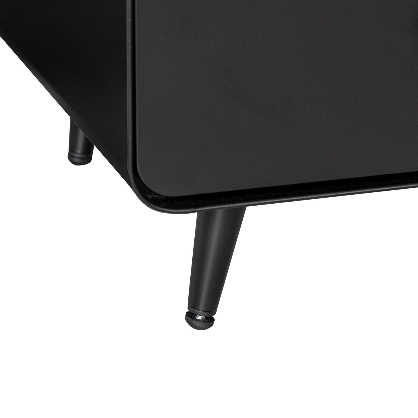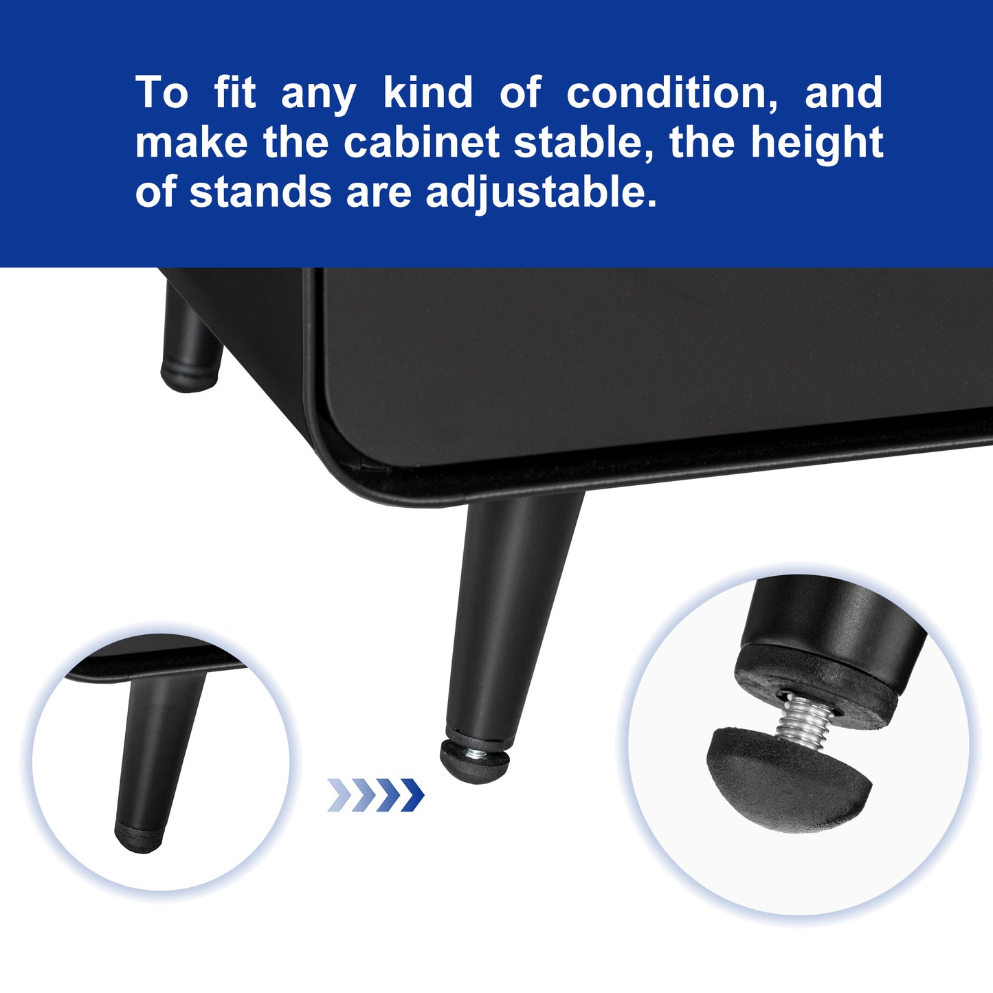 It is made out of steel materials, completely sturdy and durable. It comes with round handles, which can be easily grasped to open the drawer. There are also non-slip caps on its legs, to prevent the table from sliding and scratching your floor.