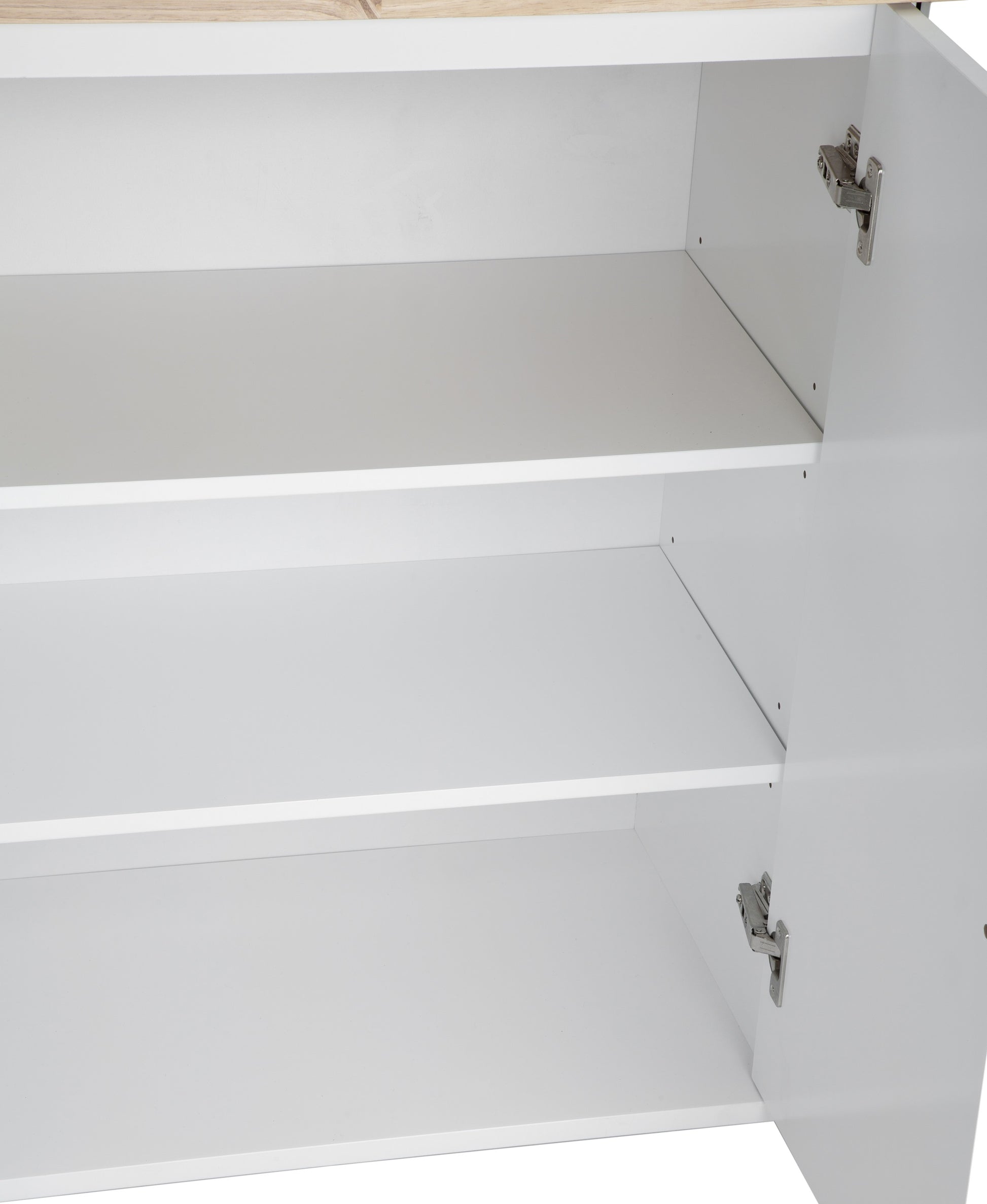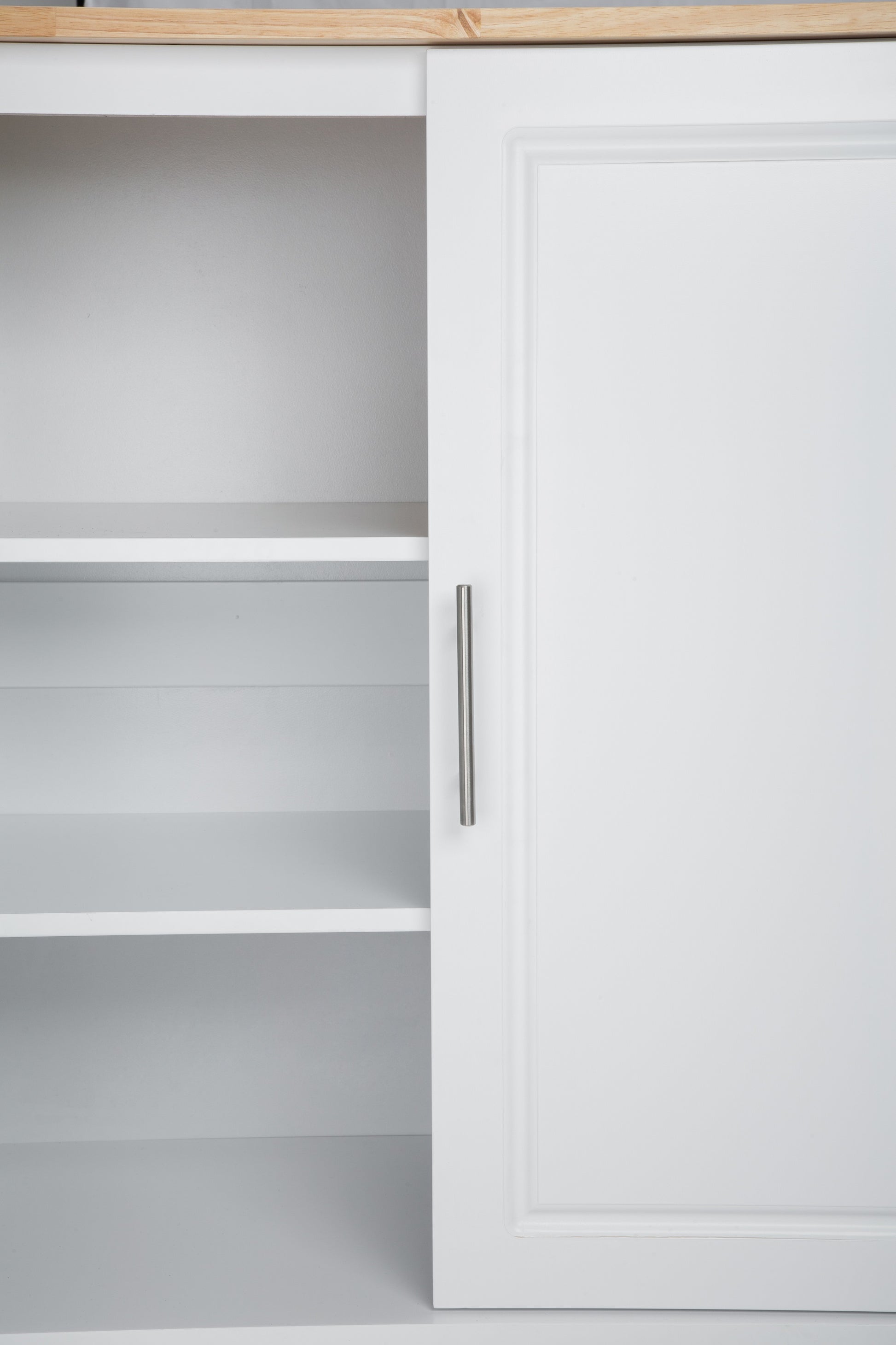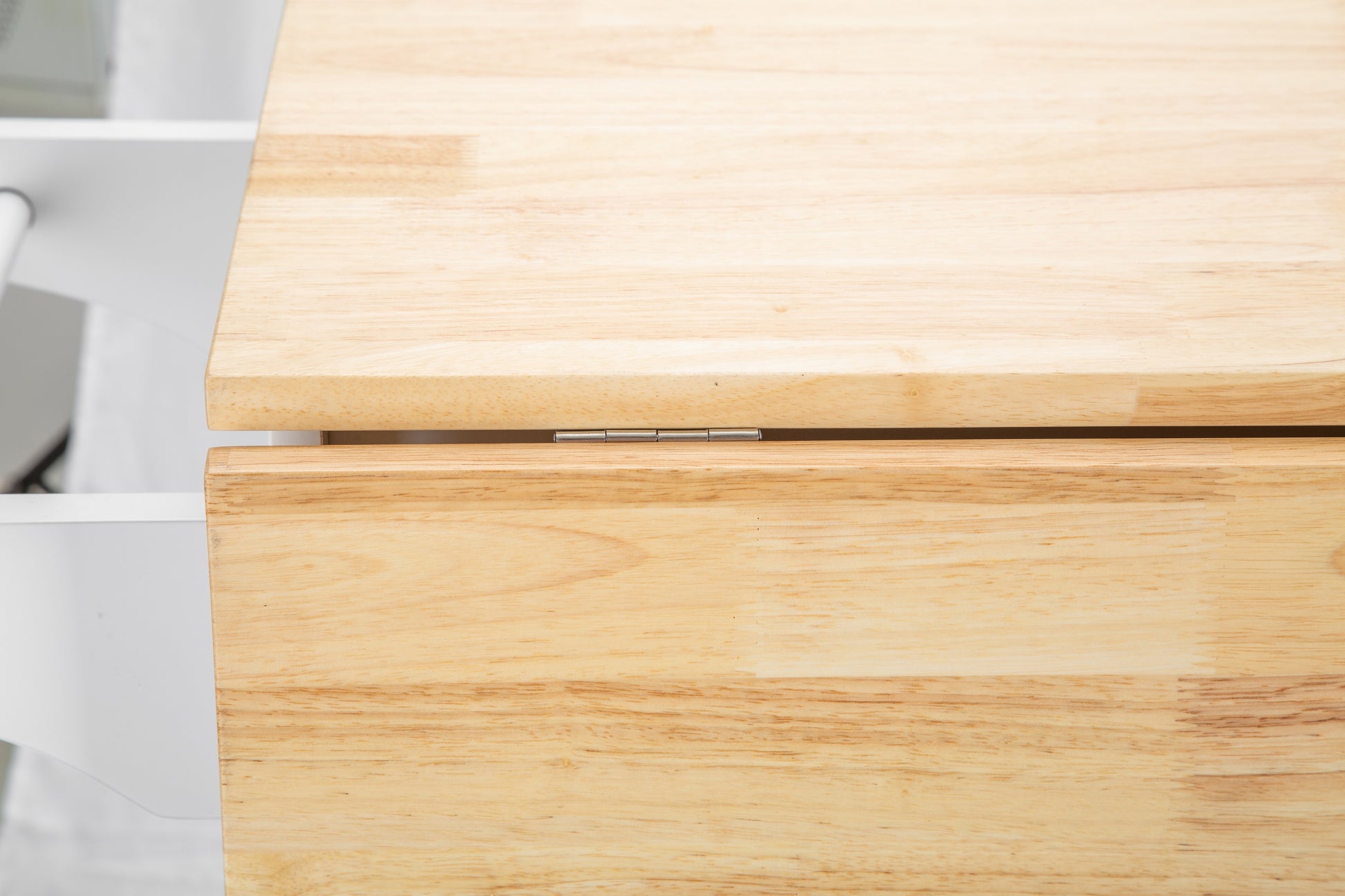 The top plate of the kitchen island is made of high-quality rubber wood, and the body is made of MDF, which maintains long-lasting and solid. The surface of the cabinet kitchen island is also processed with an exquisite UV finish which effectively prevents moisture.