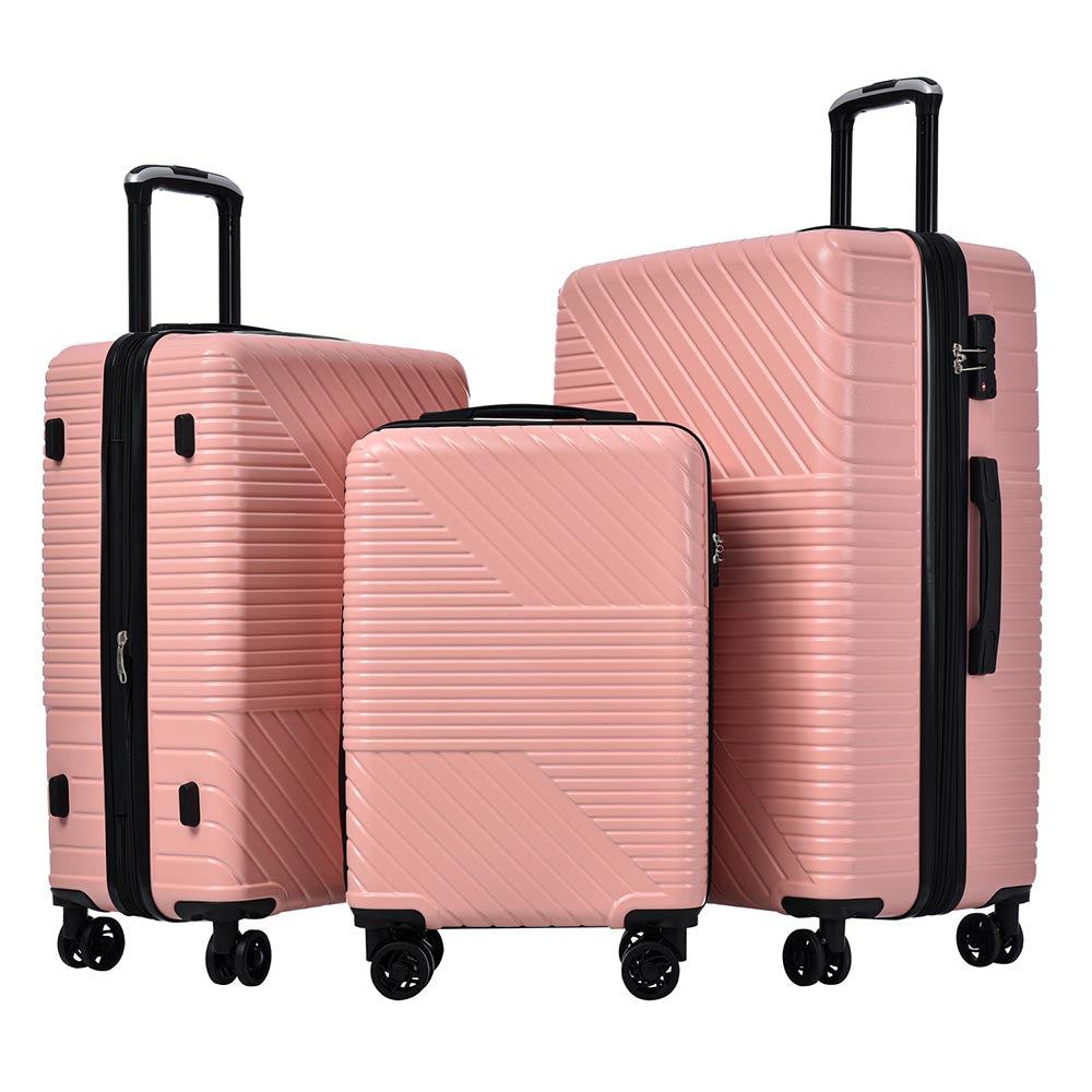 3-Piece Lightweight Hard-shell Luggage Set with Double Spinner Wheels and TSA Lock - Pink