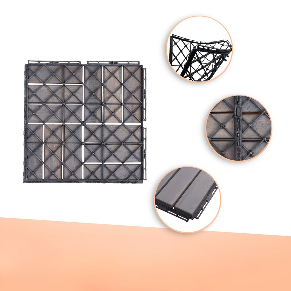 30 PCS Interlocking Deck Tiles Checker Pattern Light Gray Acacia Hardwood