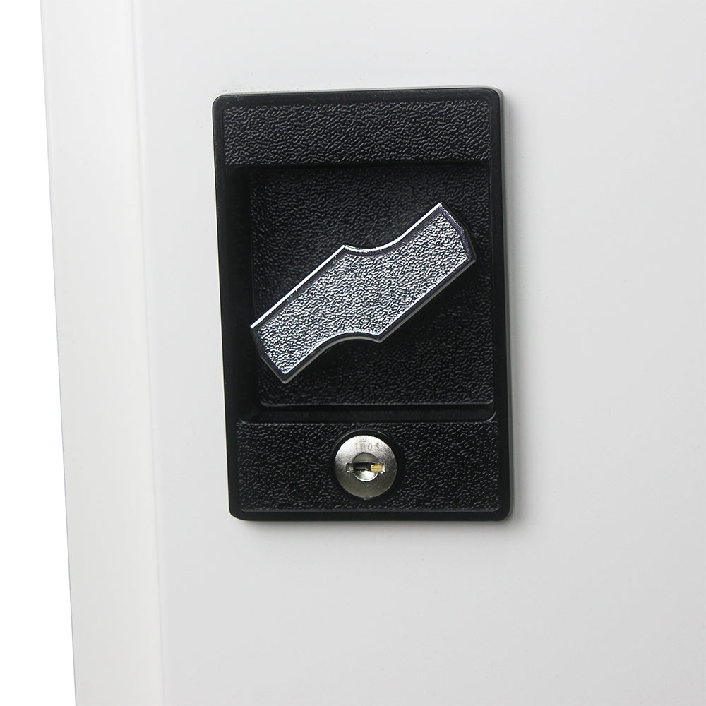 Safety and security are paramount, This cart is equipped with a lock and key system for the front and back doors, ensuring the protection of your devices during operation or while in transit. Additionally, two locking caster wheels keep the cart securely in place.