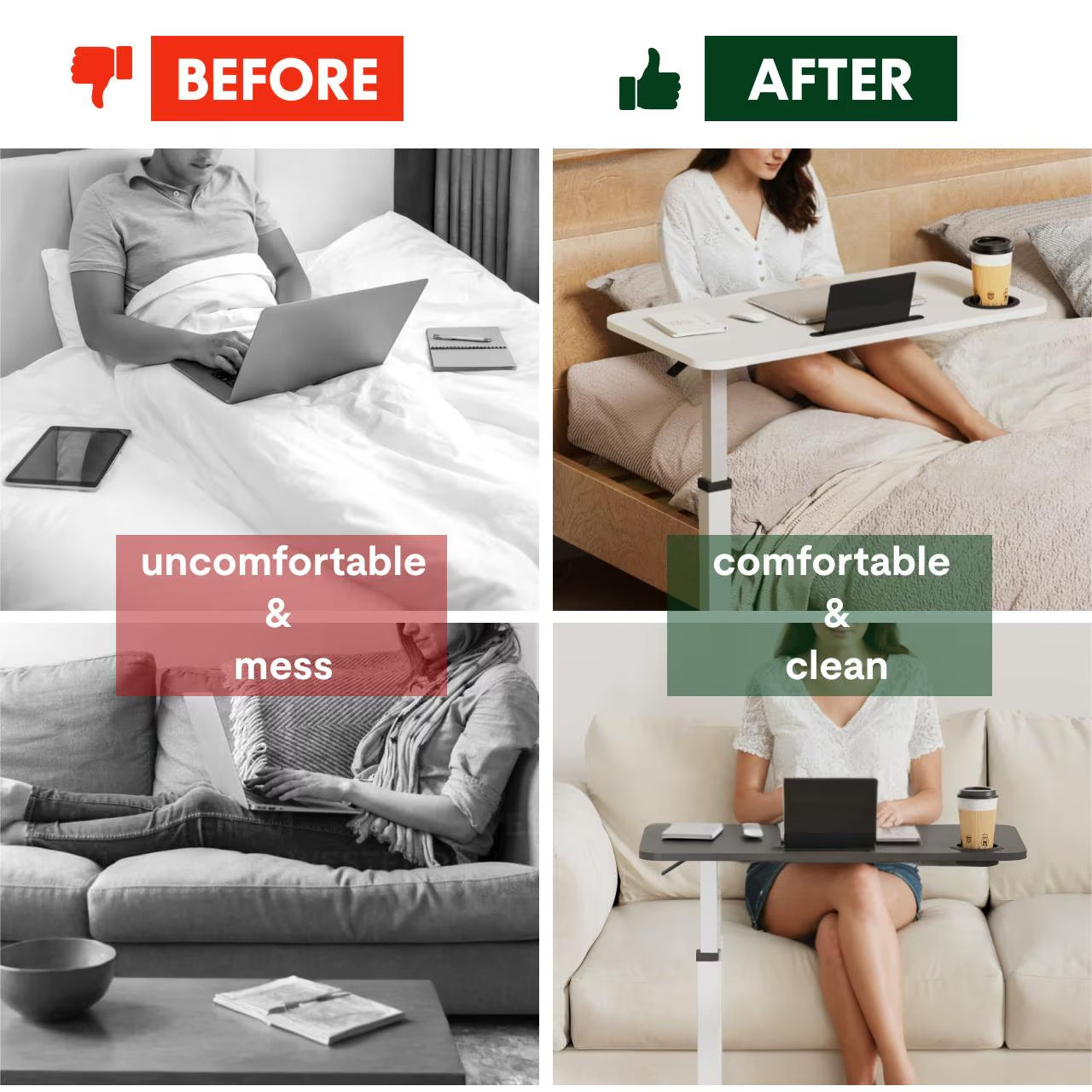 • All-in-one Design: This bed table provides a reliable and convenient desktop for anyone and can be used near furniture such as beds, sofas, and recliners. It can also be used as a breakfast tray for bedridden patients and the elderly (e.g., eating, reading, working) without getting out of bed.