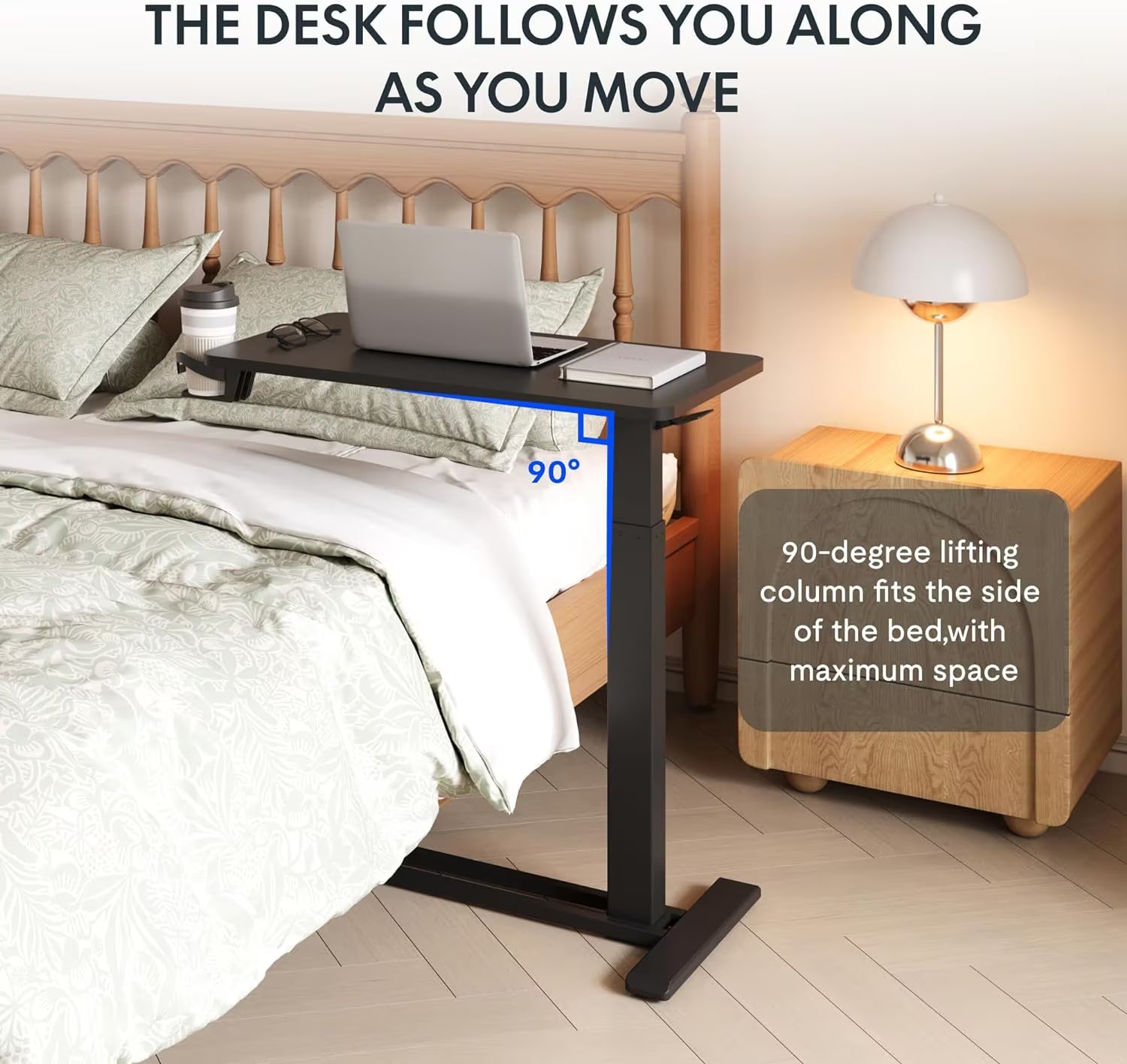 • Gas Spring Pneumatic Lift System: The bed table has a built-in gas spring for smooth height adjustment from 25.6 inches to 40.5 inches with one hand. No need to bend over or exert force to adjust the height. With the help of pneumatic lift, it can be easily adjusted with one hand.