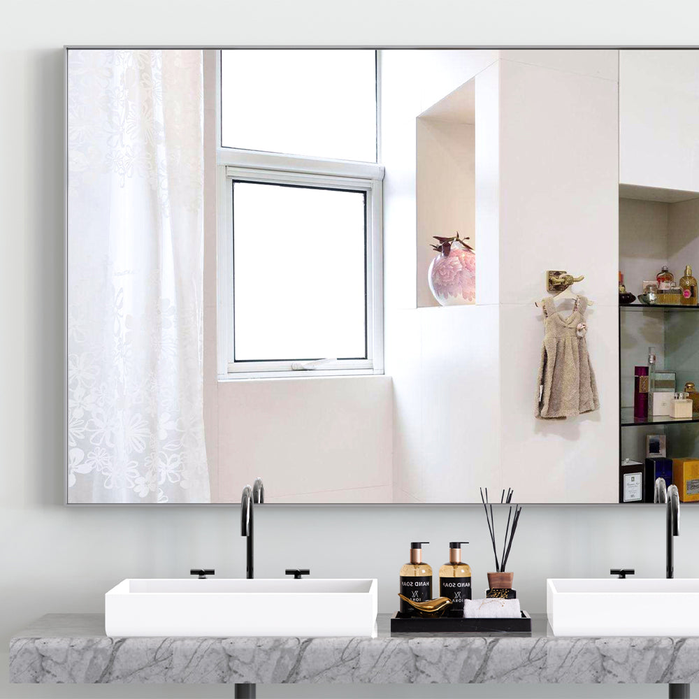 36x60 Inch Silver-Framed Modern Oversized Mirror for Bathroom