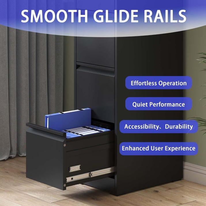 - Full Extension Drawers: Equipped with ball-bearing slides, the drawers open and close smoothly and quietly, ensuring an efficient filing experience. Full extension for easy access to all files.
