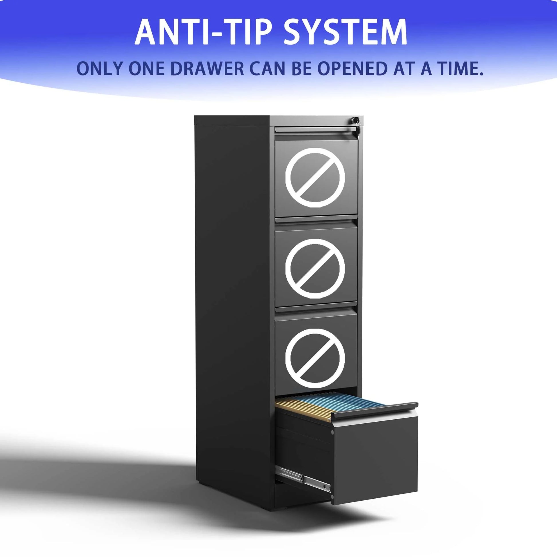 - Anti-tilt Design: Designed with an anti-tilt system to allow only one drawer open at a time, preventing tipping over. Ensures the safety and security of your important documents.