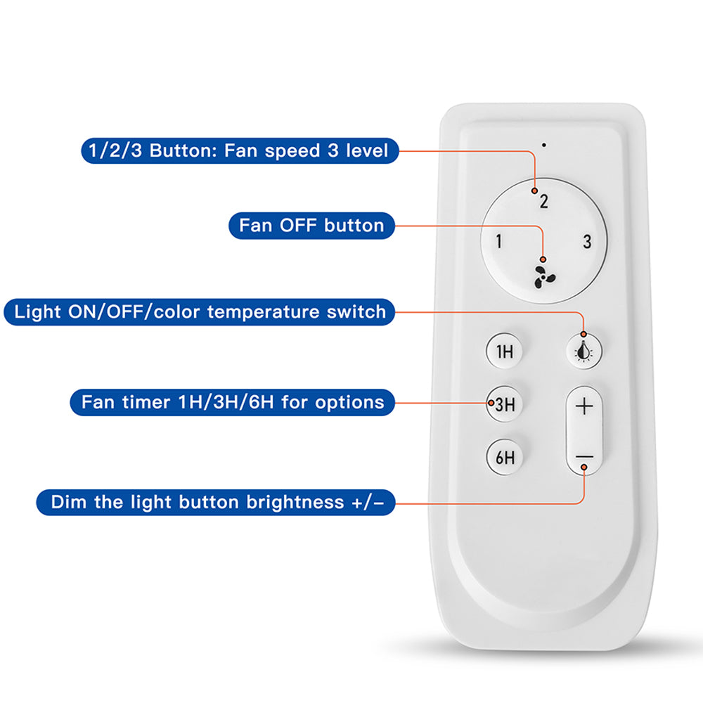 This ceiling fan offers three light output settings, allowing you to choose between 3000K, 4000K, or 6000K, depending on your desired ambiance and lighting needs. Whether you prefer warm and cozy, cool and refreshing, or bright and invigorating, this fan has you covered.