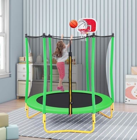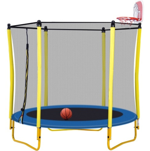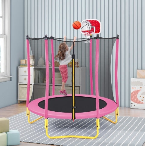 5.5FT Trampoline For Kids -65 Outdoor & Indoor Mini Toddler Trampoline With Enclosure, Basketball Hoop And Ball Included