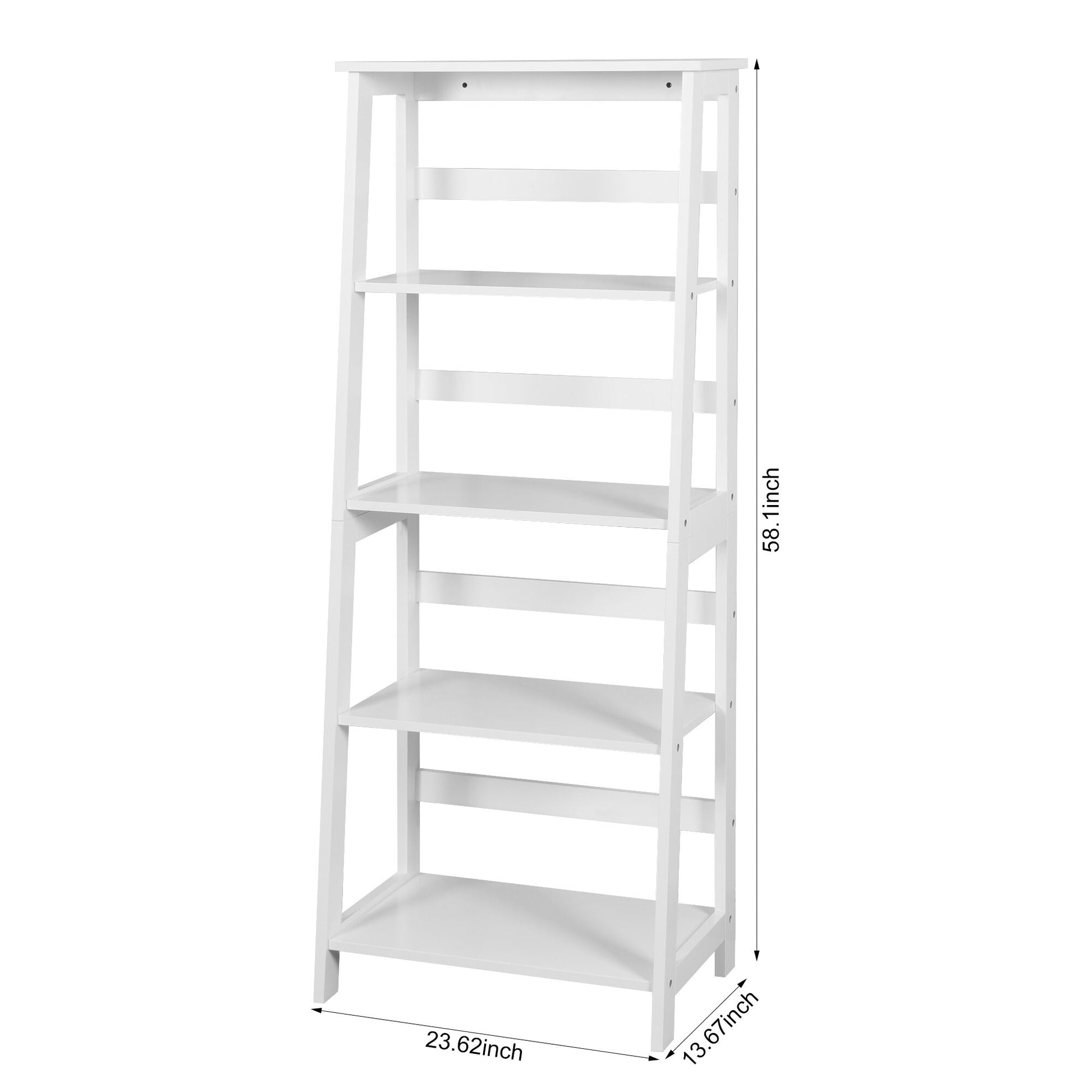 5 Tier Wooden Staircase Bookcase Ladder Designed Storage Rack- White