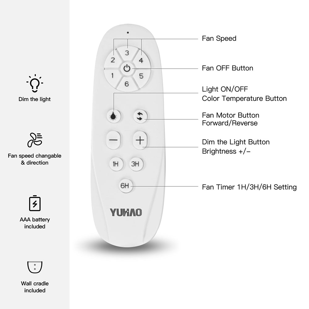 Illuminate your space with the LED light kit, featuring an ABS shade. This kit offers three color temperature options, allowing you to create the perfect lighting ambiance for different rooms and occasions. Whether you need warm white, cool white, or neutral white light, this fan has you covered.