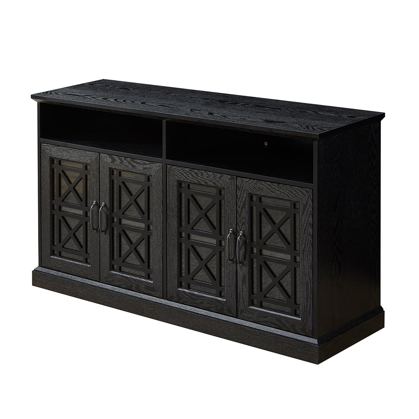 53" TV Console Storage Buffet Cabinet Sideboard Black- Wood Grain Finish