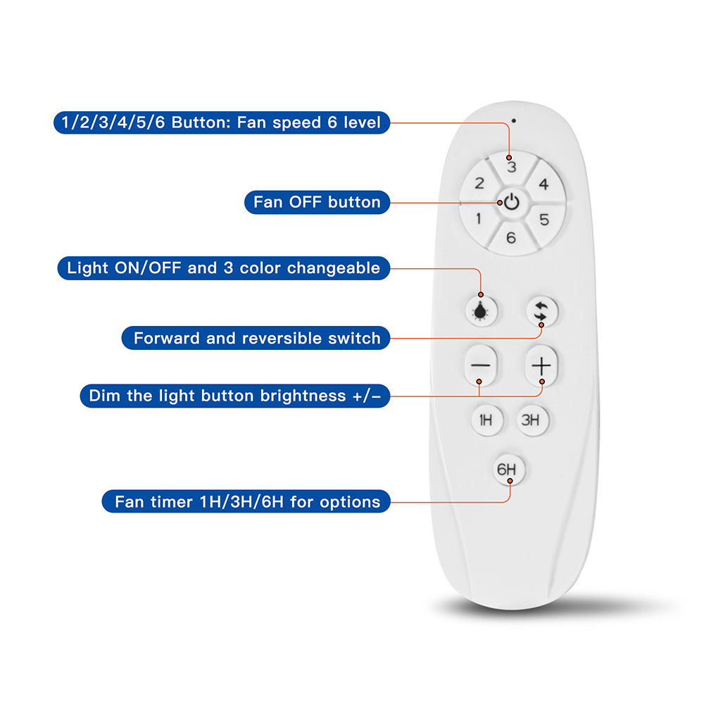 Adjust the fan's speed, direction, and lighting settings from anywhere in the room. The remote control also features dimming and timing functions, allowing you to customize your experience to fit your needs.