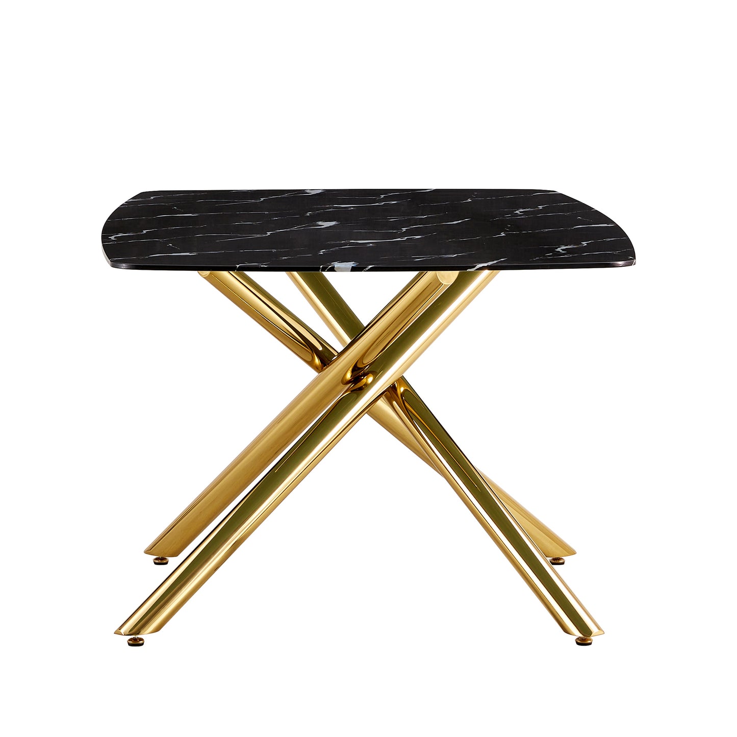 6-8 Seater Modern Kitchen Dining Table Rectangular Black Marble Table Top with Single Gold Metal Leg