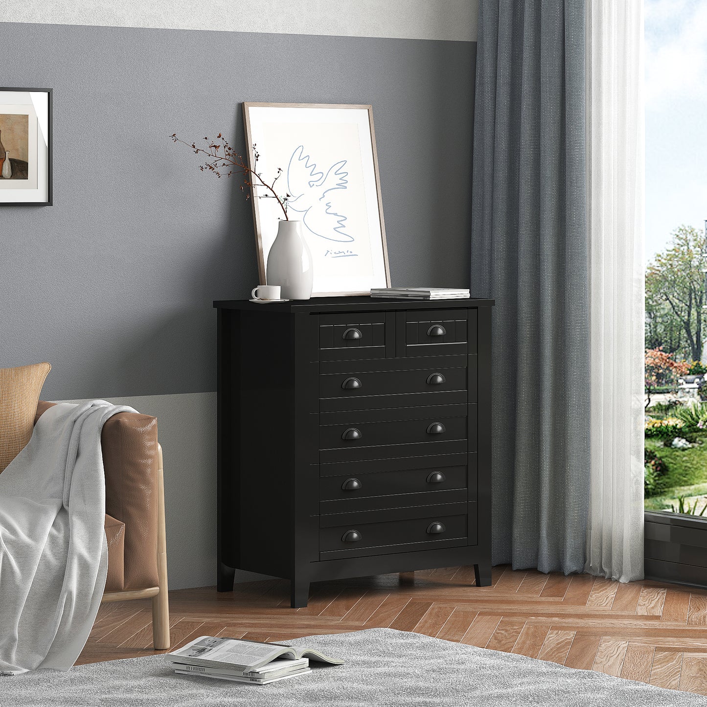 6 Drawers Wood Accent Stylish Tall Dresser Chest and Storage Organizer- Black