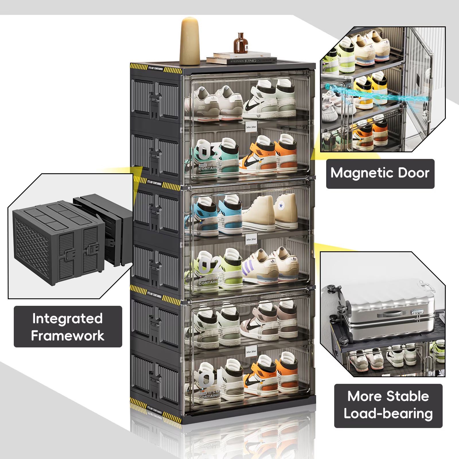 【Upgraded PET Door Design】The enhanced PET door panels are stronger and more durable, providing a smooth and effortless opening and closing experience. The clear doors allow you to quickly locate your shoes, while the magnetic closure ensures they stay protected from dust and moisture.