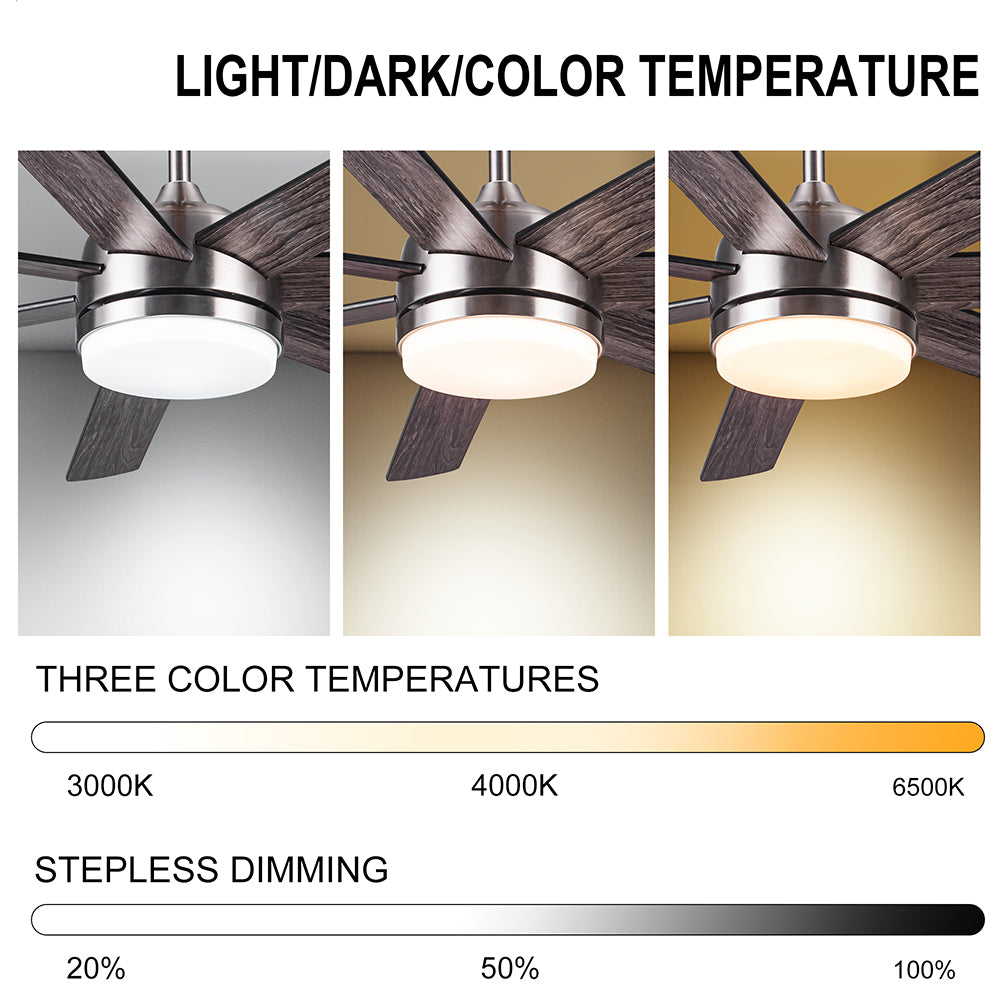 This ceiling fan features an LED light kit with an acrylic shade that provides three color temperatures, allowing you to create the perfect ambiance for different rooms and occasions.