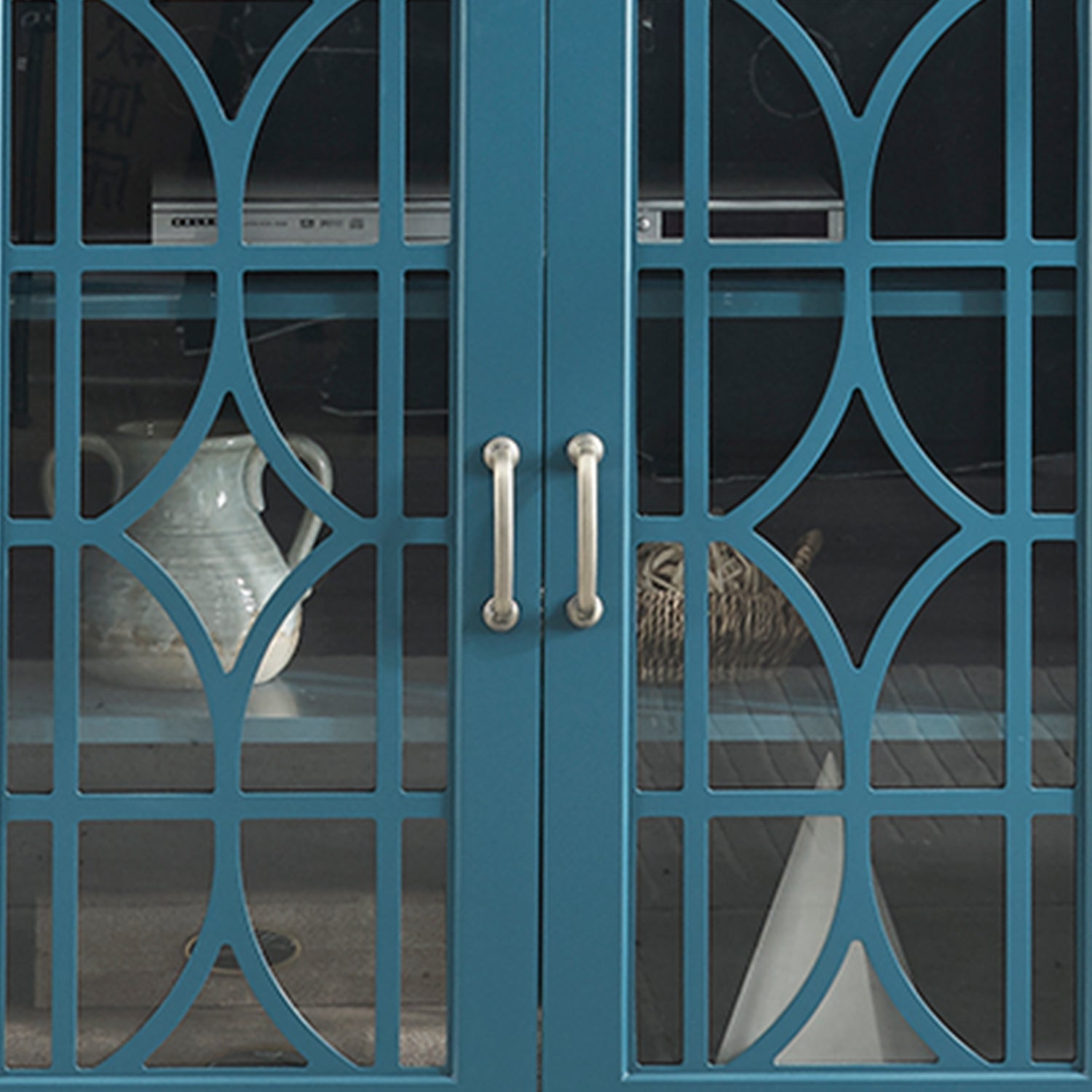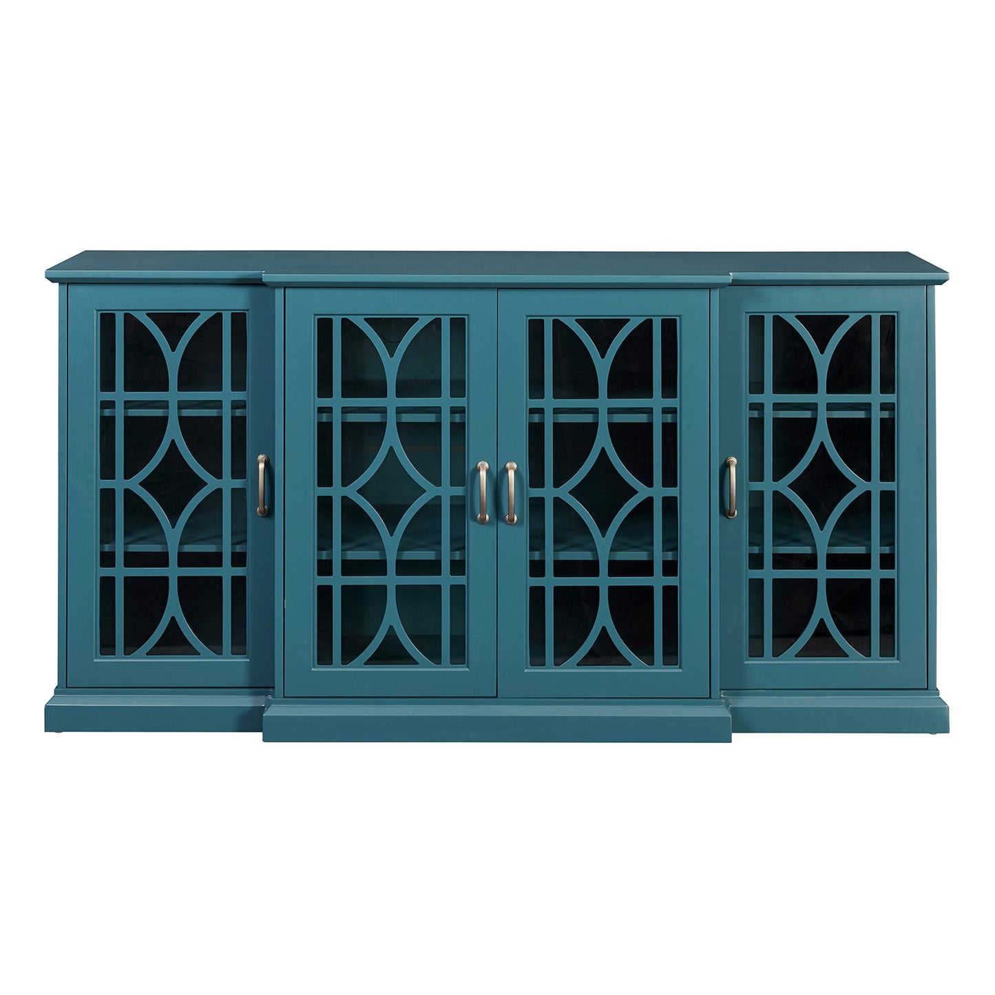 This 63" TV Stand, Storage Buffet Cabinet, Sideboard in a stunning Teal Blue color. This versatile piece is designed to enhance your living space while offering ample storage for your media equipment, dining essentials, or any other belongings. With its sleek design, glass door accents, and adjustable shelves, it's the perfect addition to your dining or living room.