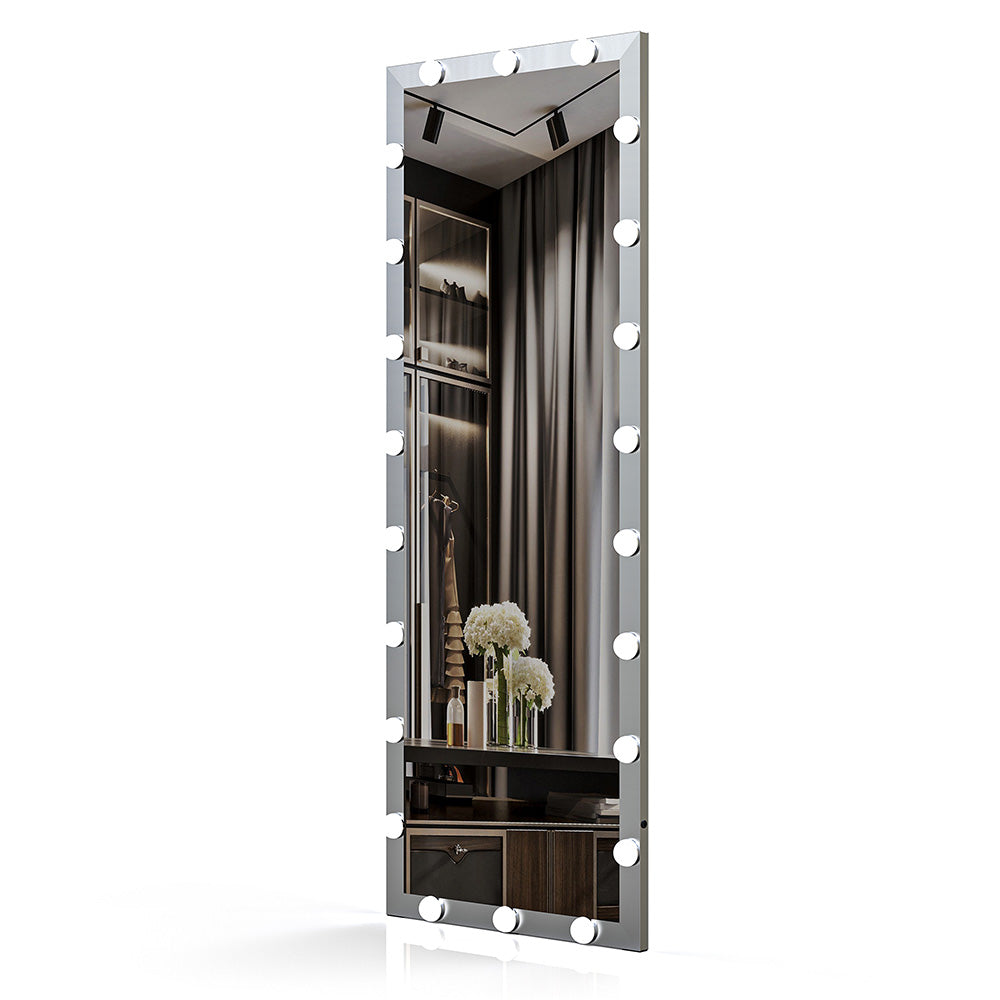 63x24 Inch Hollywood Full-Length Lighted Mirror - Silver
