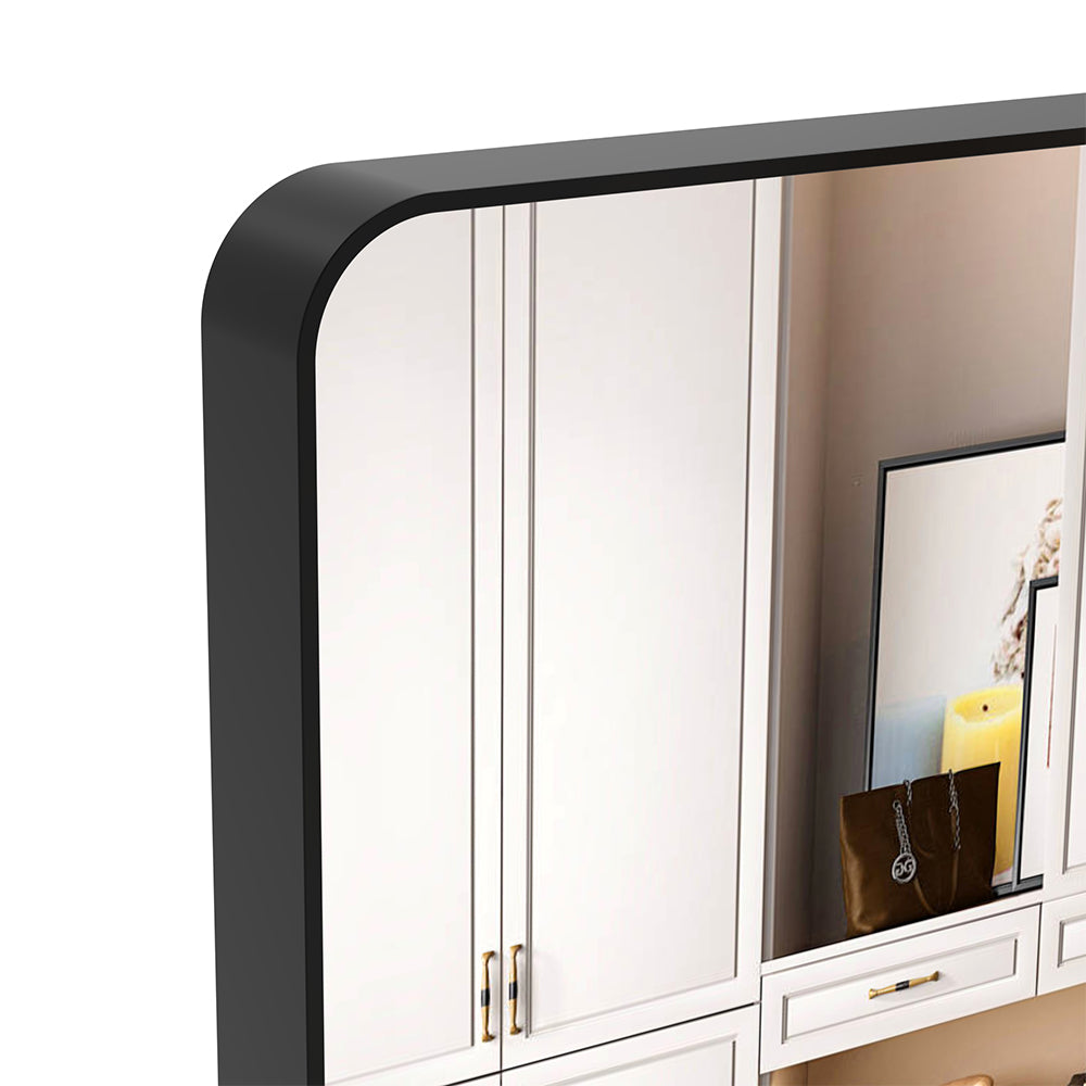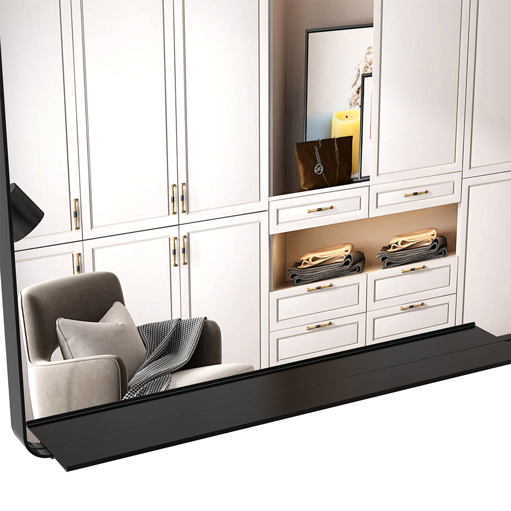 72x32 Inch Oversized Mirror with Mobile Tray, - Black Frame