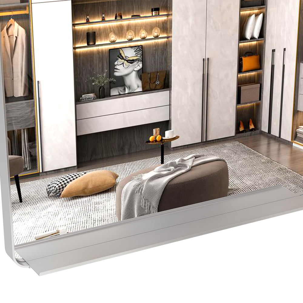 72x36 Inch Oversized Mirror with Mobile Tray-Silver Frame