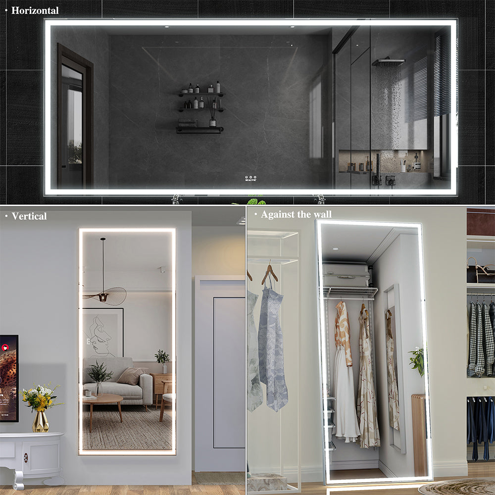 This oversized 84x36 inch Bath Mirror and Full-Length Mirror offers a wide and clear reflection, allowing you to admire your entire ensemble at once. Whether hung vertically or horizontally on the wall as a bath mirror or used as a floor mirror, this versatile and shiny mirror elevates multiple application scenarios.