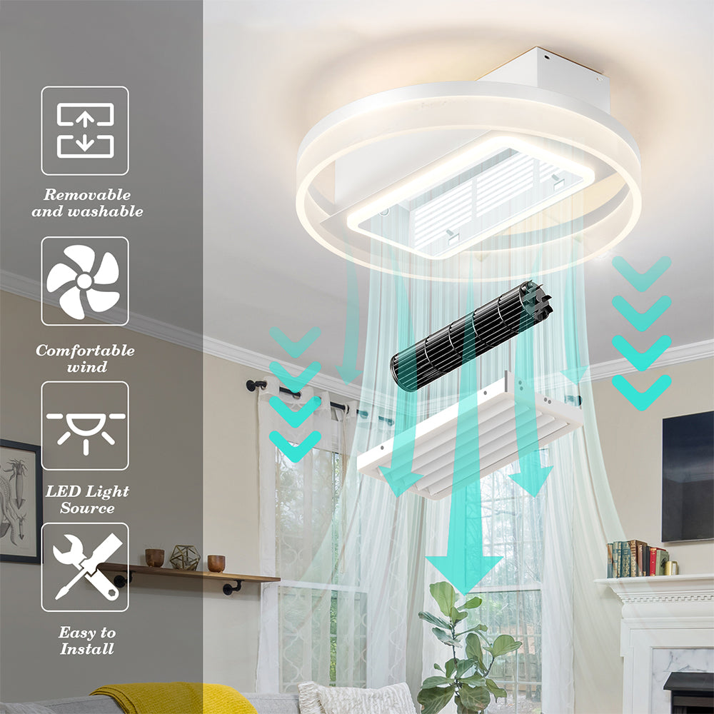 Not only does the Bladeless Dimmable LED Ceiling Fan offer exceptional functionality, but it also boasts a modern look and beautiful minimalist appeal. Its sleek design and clean lines create a visually stunning centerpiece that effortlessly enhances the overall ambiance of your space. The bladeless design adds a touch of sophistication and uniqueness, setting it apart from traditional ceiling fans.