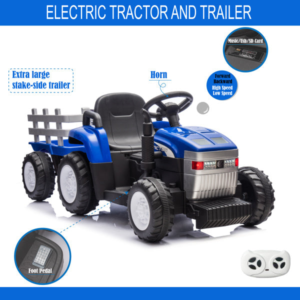 Blue, 12V7AH Battery Powered Toy Tractor With Trailer