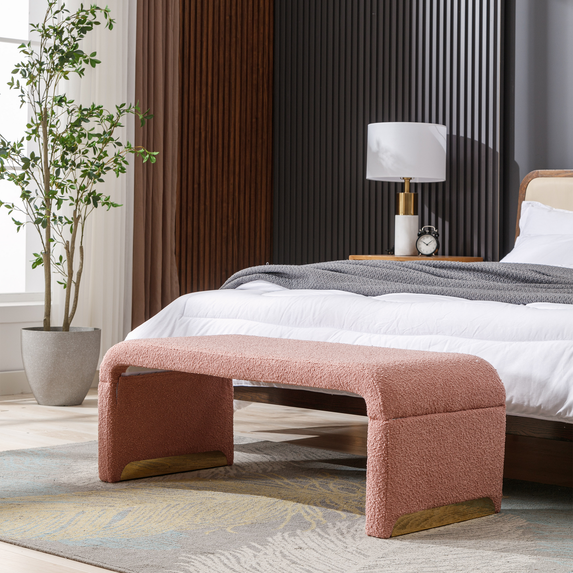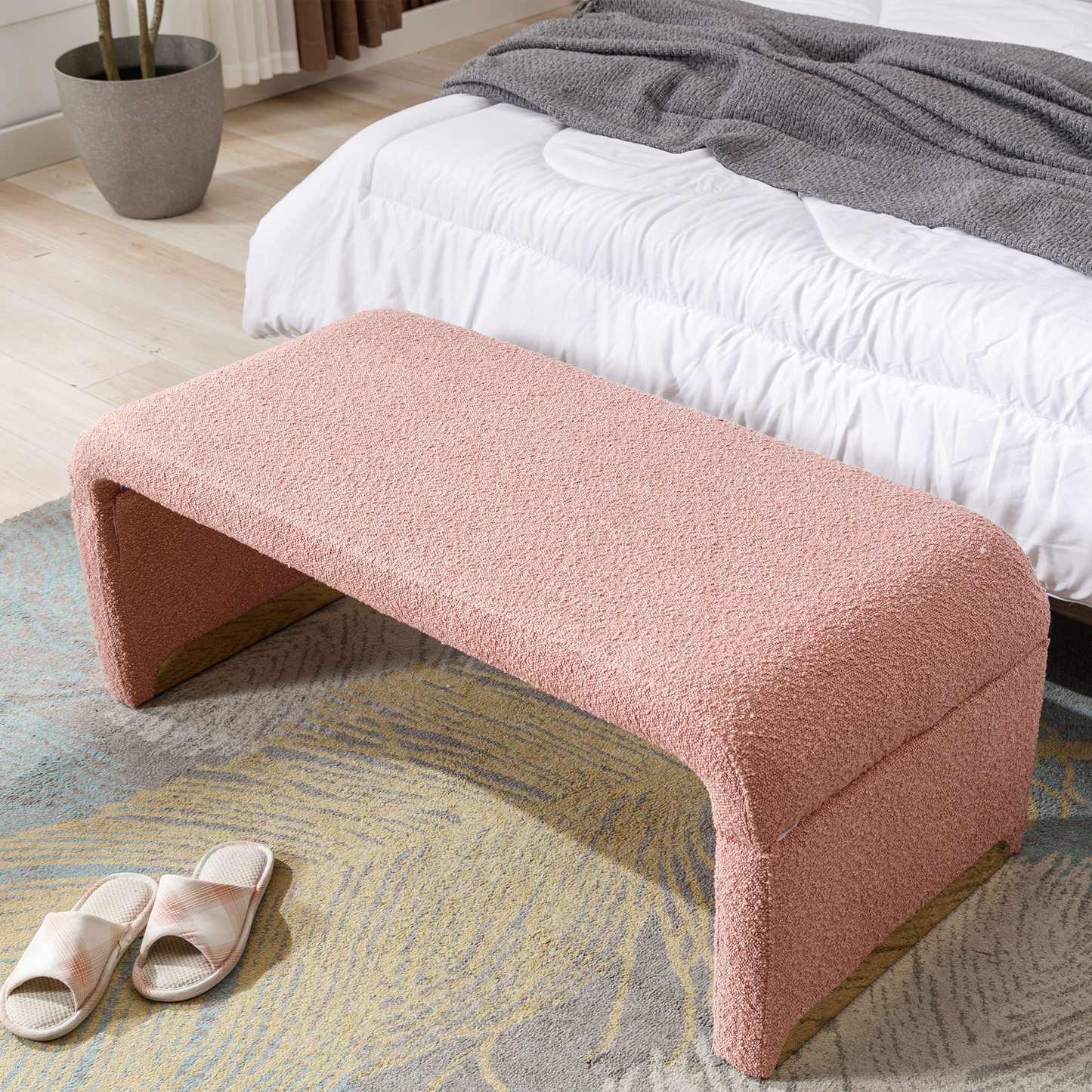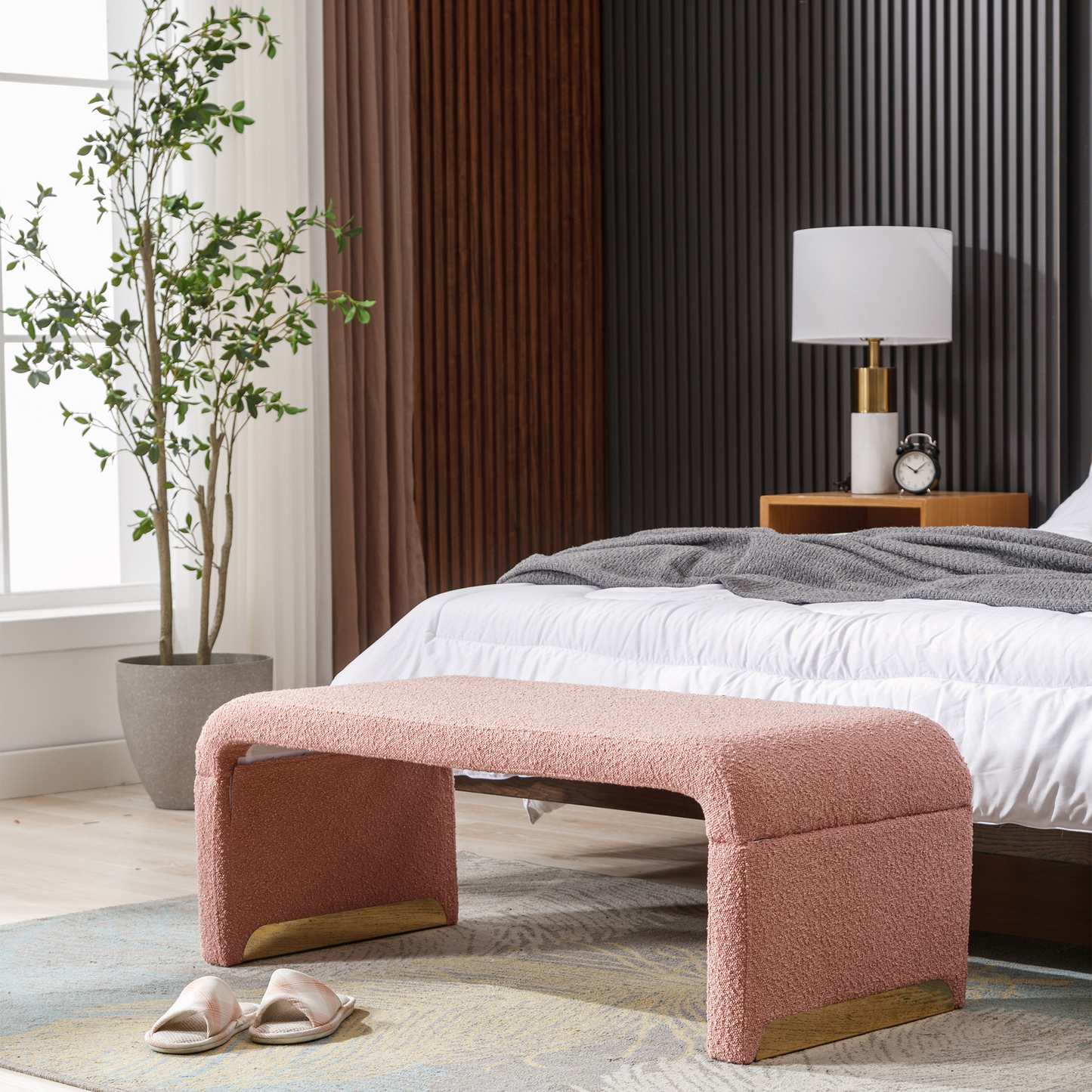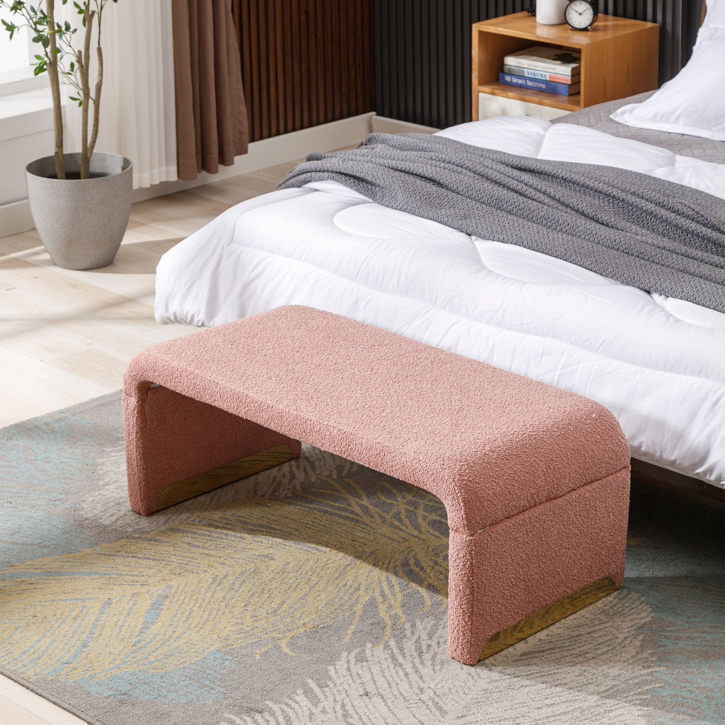 Boucle Fabric Loveseat Ottoman Bedroom Footstool With Gold Metal Legs- Pink