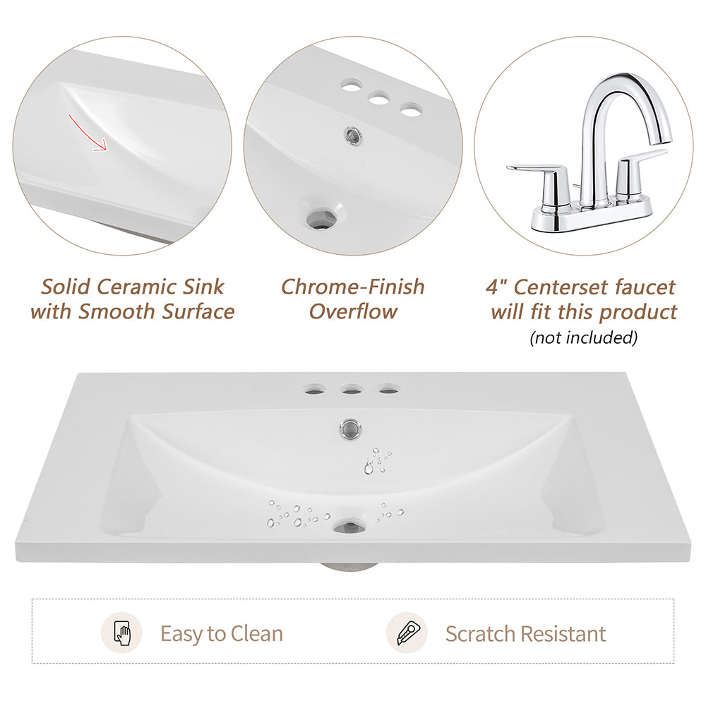 For your convenience, all holes are predrilled, allowing for quick and hassle-free installation. Customize your bathroom decor by pairing this vanity top with different colors of vanity bases. Whether you prefer a classic white base or a contrasting color, our versatile vanity top will seamlessly complement your chosen style.