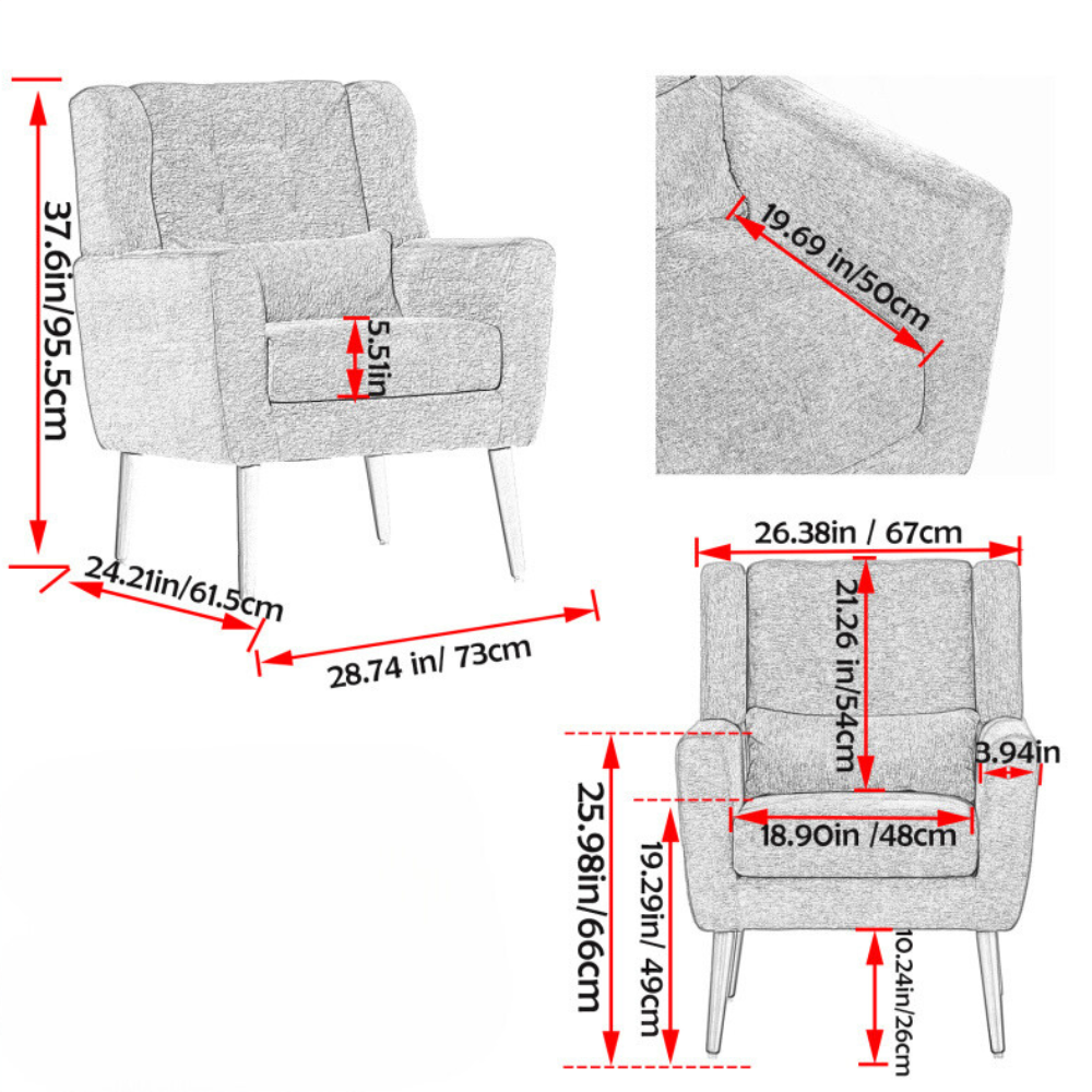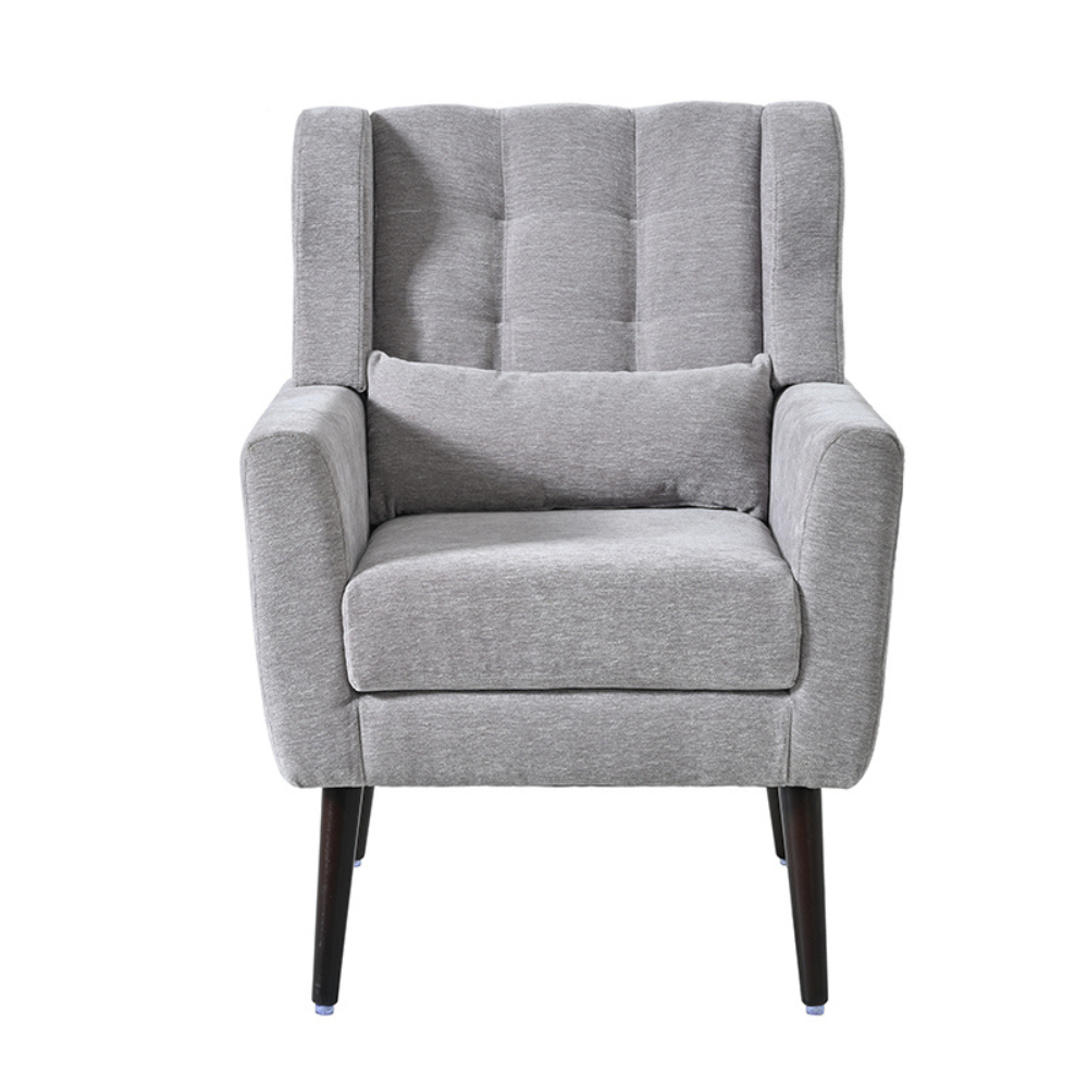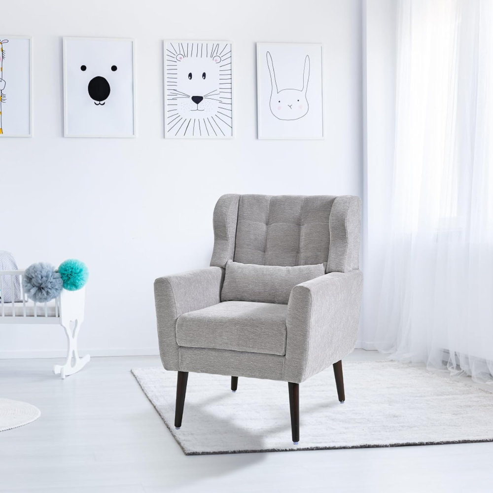 Supported by solid wood legs, this accent chair is as durable as it is stylish. The sturdy construction ensures stability, while the modern gray chenille upholstery adds a sophisticated touch. This chair is not only a functional piece of furniture but also a stylish statement that complements a wide range of interior designs, making it a versatile choice for any home.