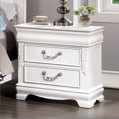 Product Name:Classic White Color 1pc Nightstand Bedroom Furniture Solid wood Nickel Hanging Pulls 2-Drawers Bedside Table