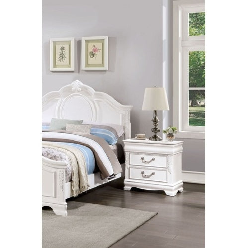 Classic White Color 1pc Nightstand Bedroom Furniture Solid Wood Nickel Hanging Pulls 2-Drawers Bedside Table