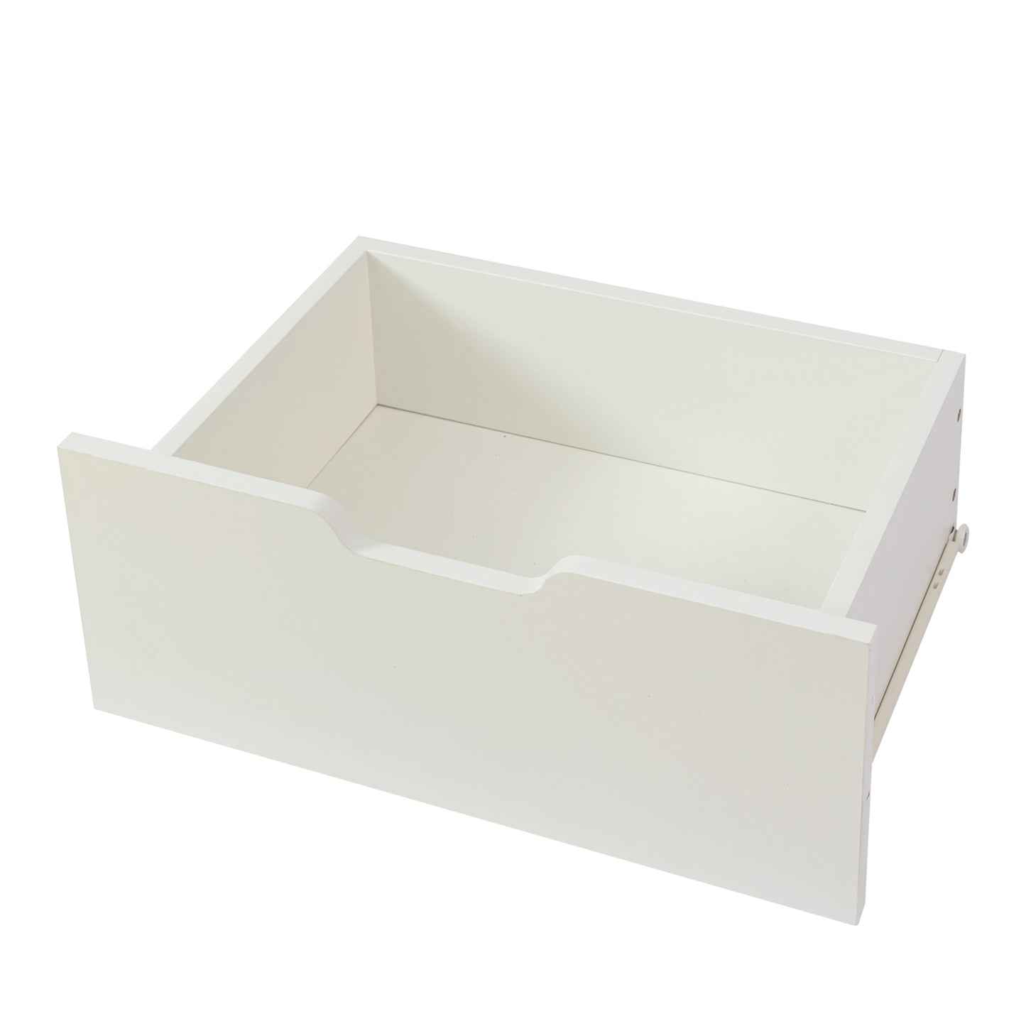 The large drawers on the left and right sides of your desktop and the two open spaces in the middle are large enough to hold your most frequently used items.
