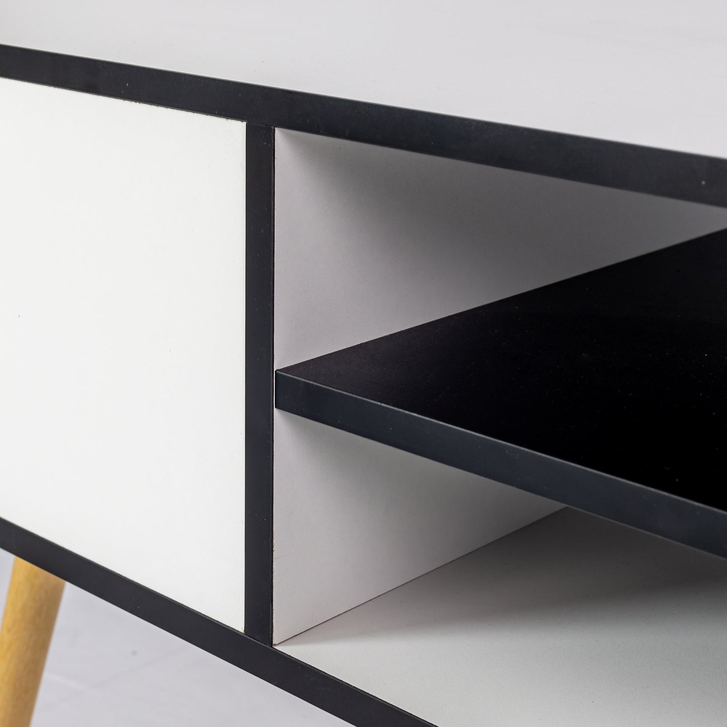 Coffee Table with Solid Wood Legs Support and Big Storage Space- White