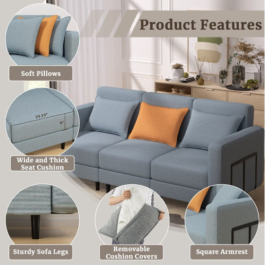 High quality solid wood frame, stable support, with both internal and external repairs. Using high-density rebound sponge, balanced elasticity, comfortable and flat, not easily deformed, providing strong support and comfortable living like clouds. Better relaxation allows for more satisfying physical enjoyment. Module combinations are adaptable to various environments and can be arranged as desired without any constraints.