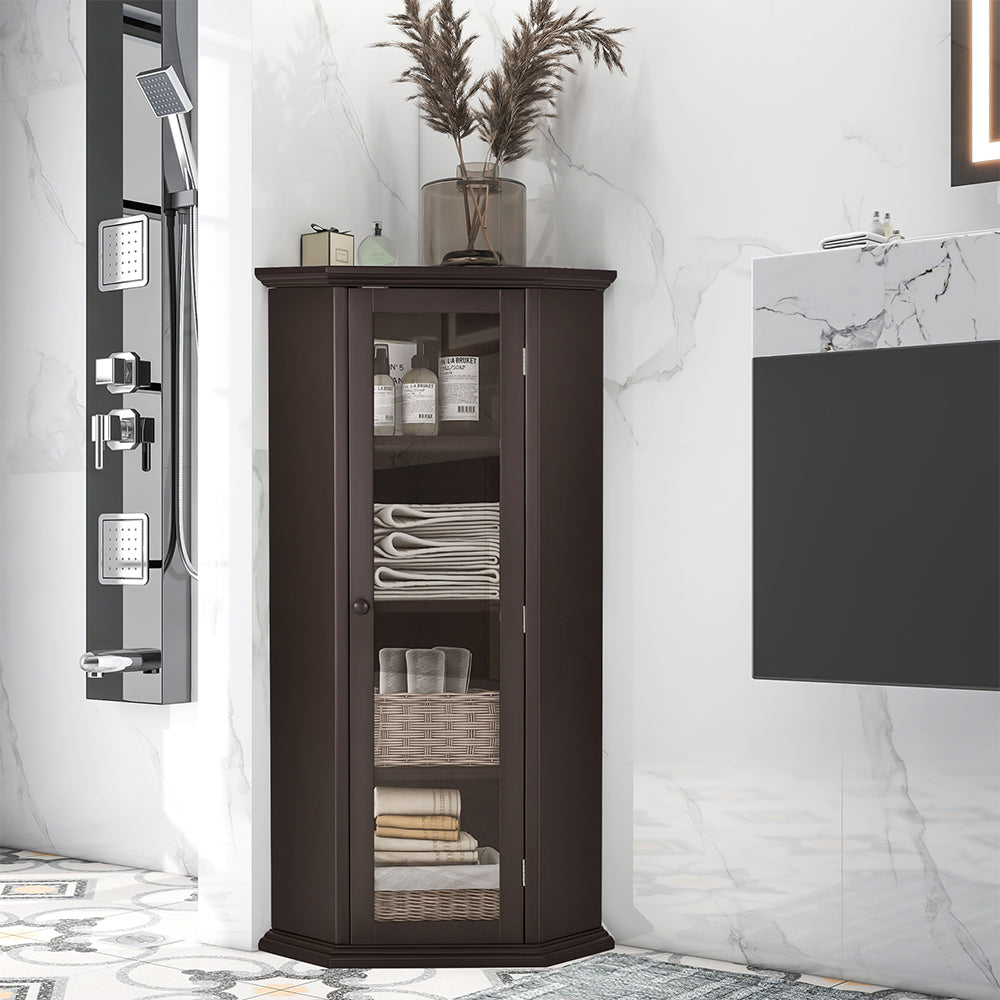 Corner Cabinet with Glass Door - Brown
