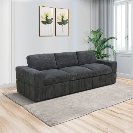 Dark Grey Corduroy Living Room Double Armrests 3-Piece Sofa