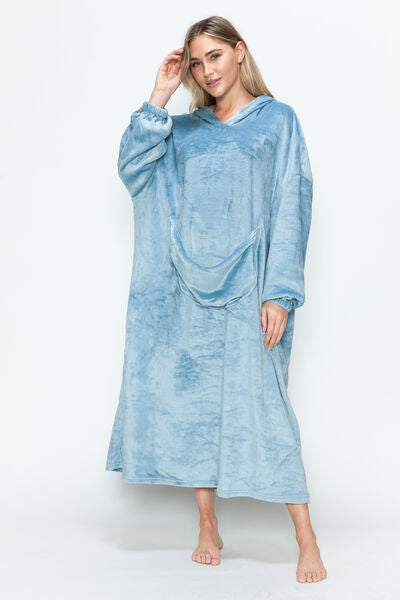 Double Take Full Size Pocketed Hooded Midi Lounge Dress