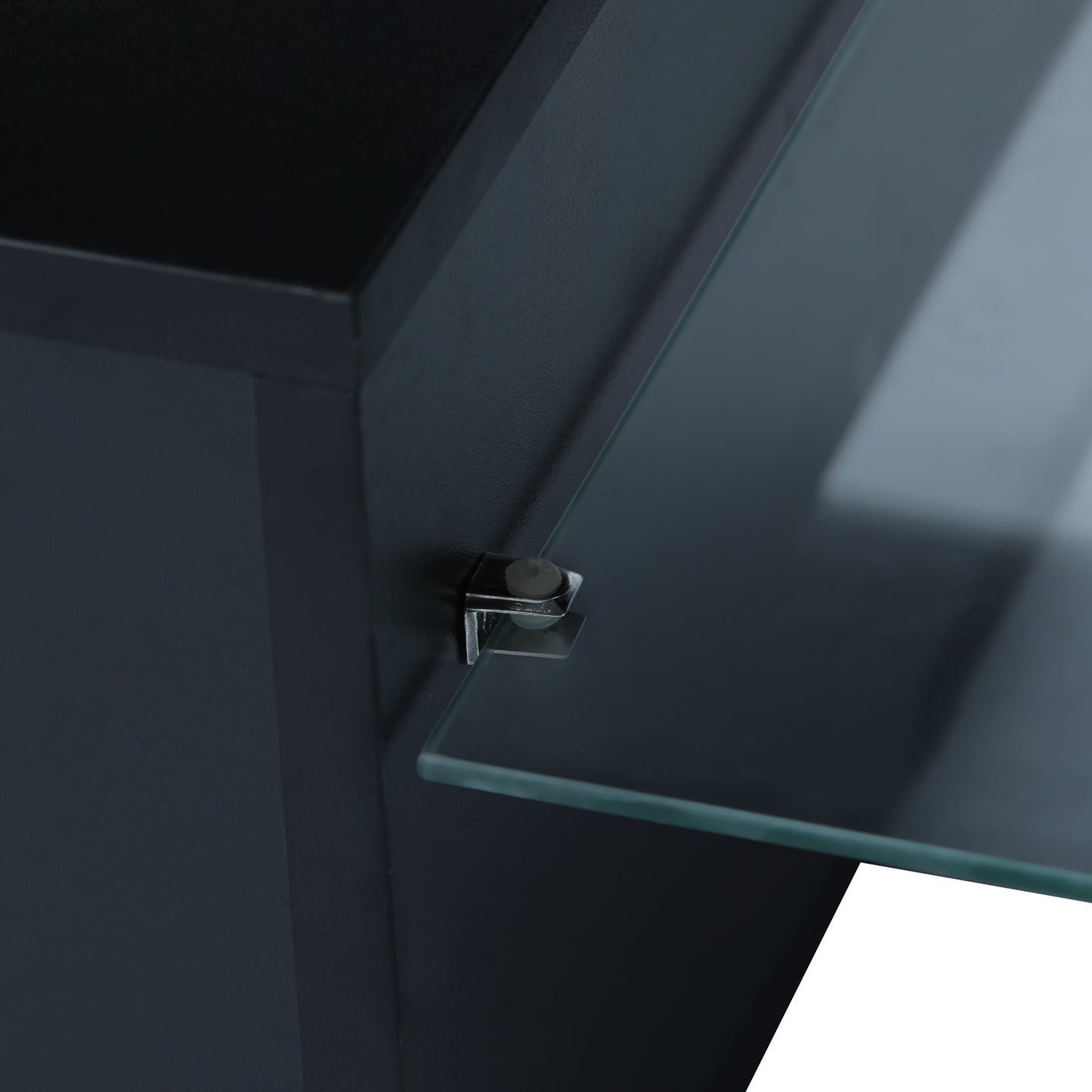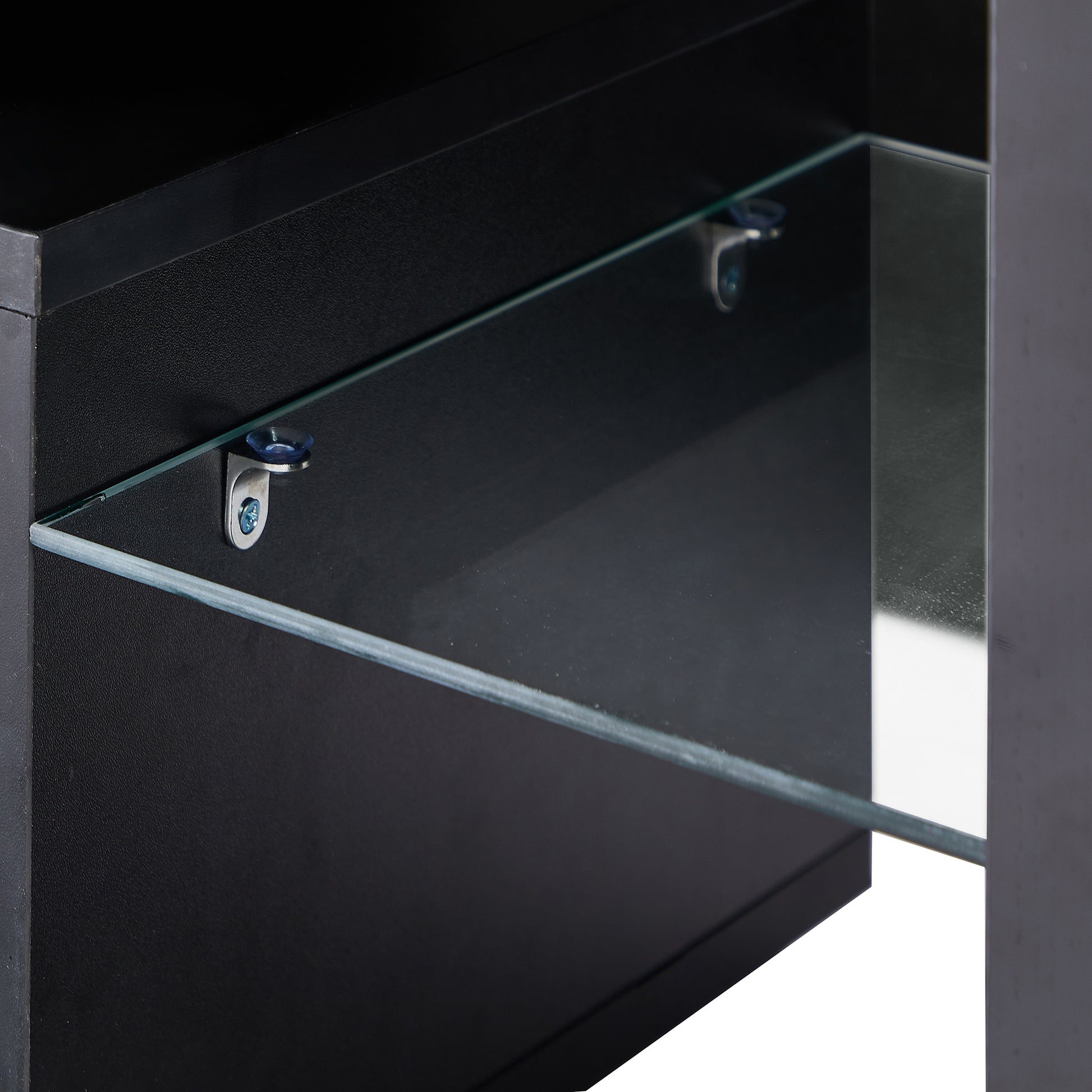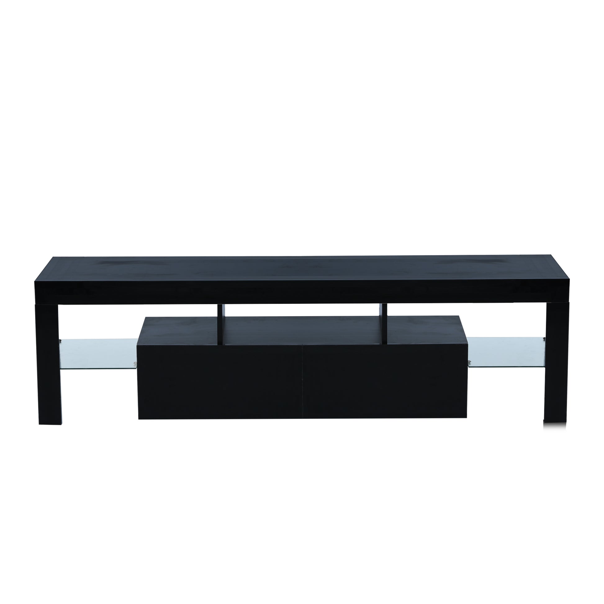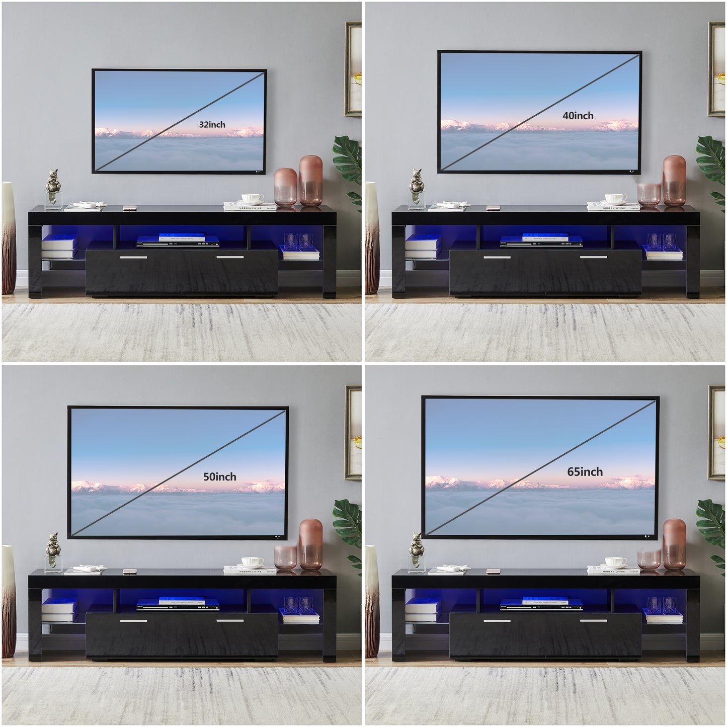 Easy Assembly High Glossy Front TV Stand with Storage Drawers and LED Light - Black