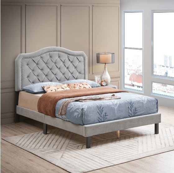 Easy To Assemble - Grey Velvet - Platform Bed - Queen