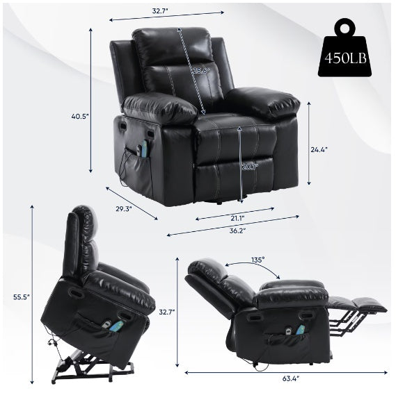 Product Name: 21" Seat Width, Large Size Electric Lift Recliner Sofa for Seniors, 8 Point Vibration Massage & Wood Heating, Remote Control, Side Pockets & Cup Holder, Comfortable Fabric, Over-Padded Arm PU