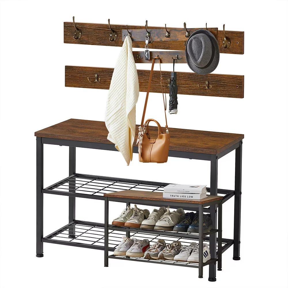 Entryway 3-tier Shoe Rack Bench Set,with 2 Coat Racks,Bag,Hat Hanging Organizer,for Foyer